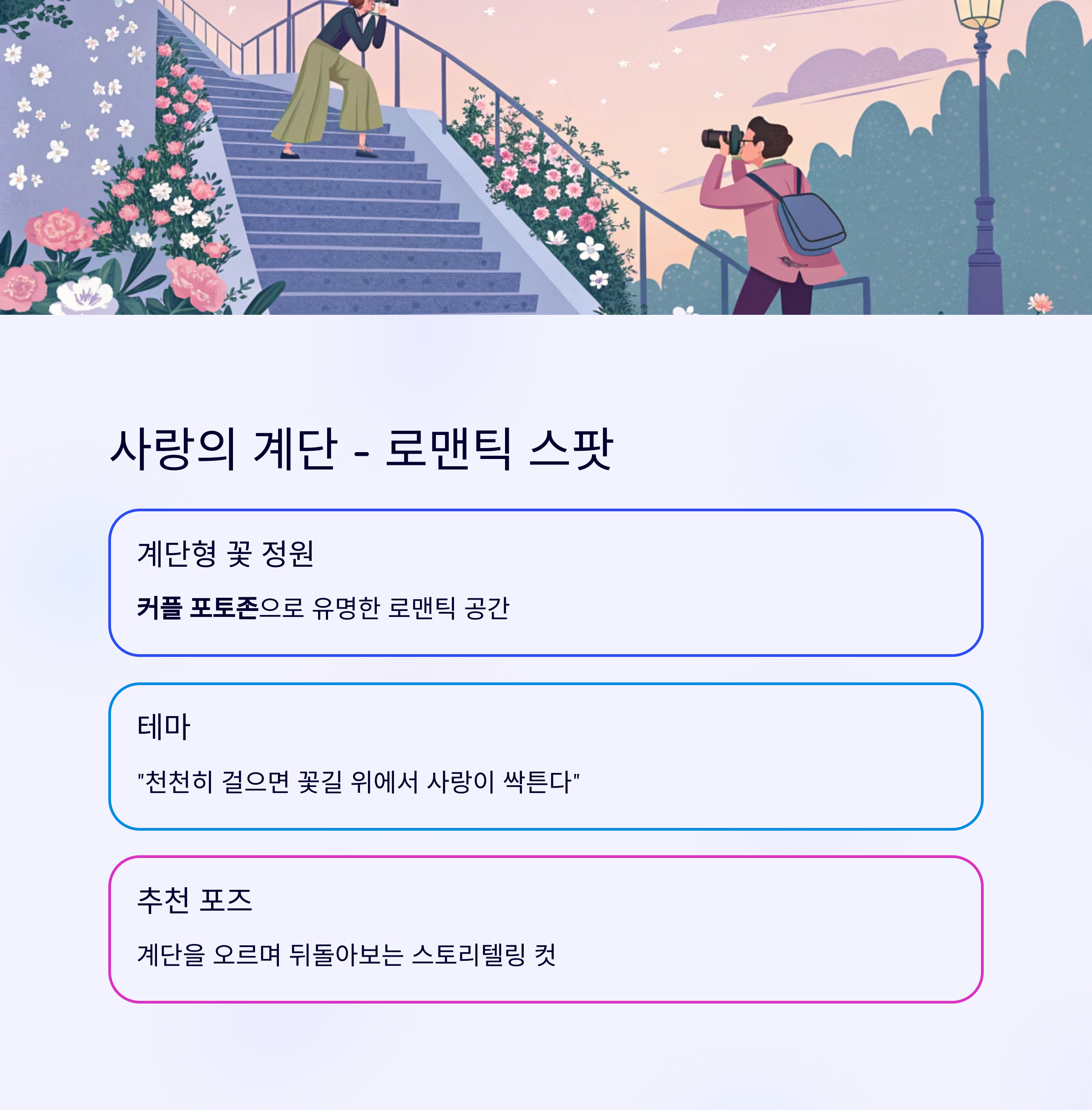 계단형 꽃 정원으로 구성된 이곳은 커플 포토존으로 유명합니다.