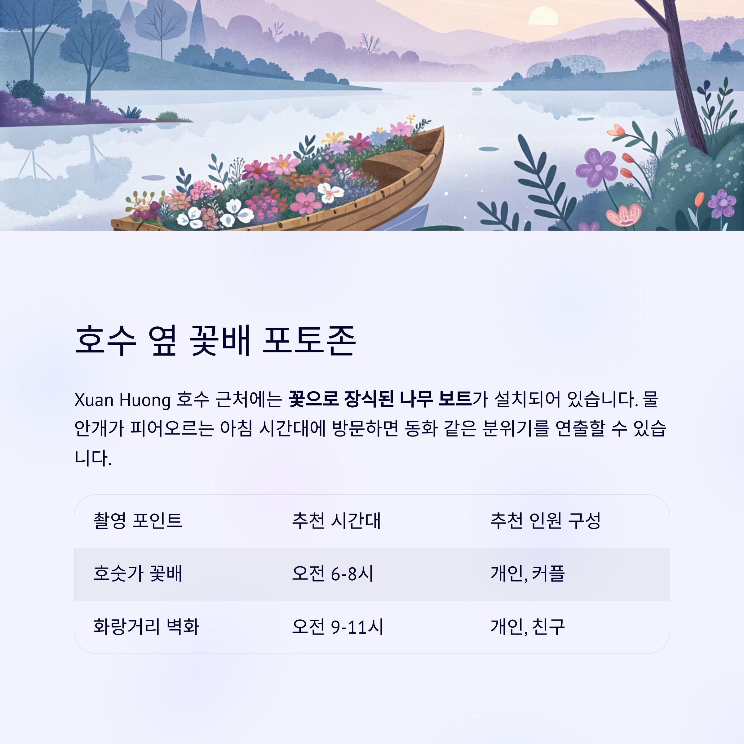 호수 옆 꽃배 포토존 – 몽환적 감성의 정수