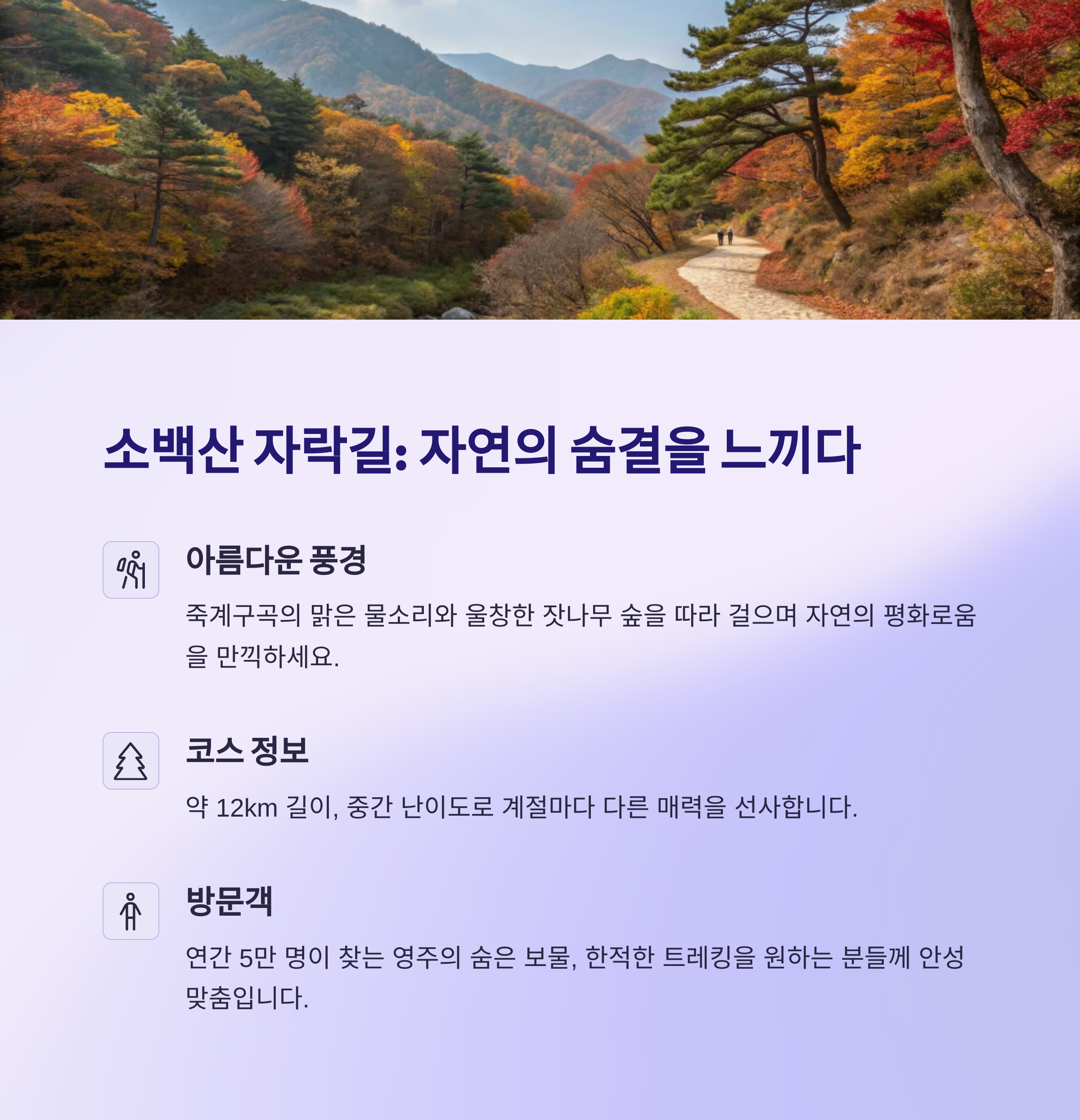 | 소백산 자락길 | 청아한 죽계구곡과 잣나무 숲을 따라 걷는 힐링 코스 |
