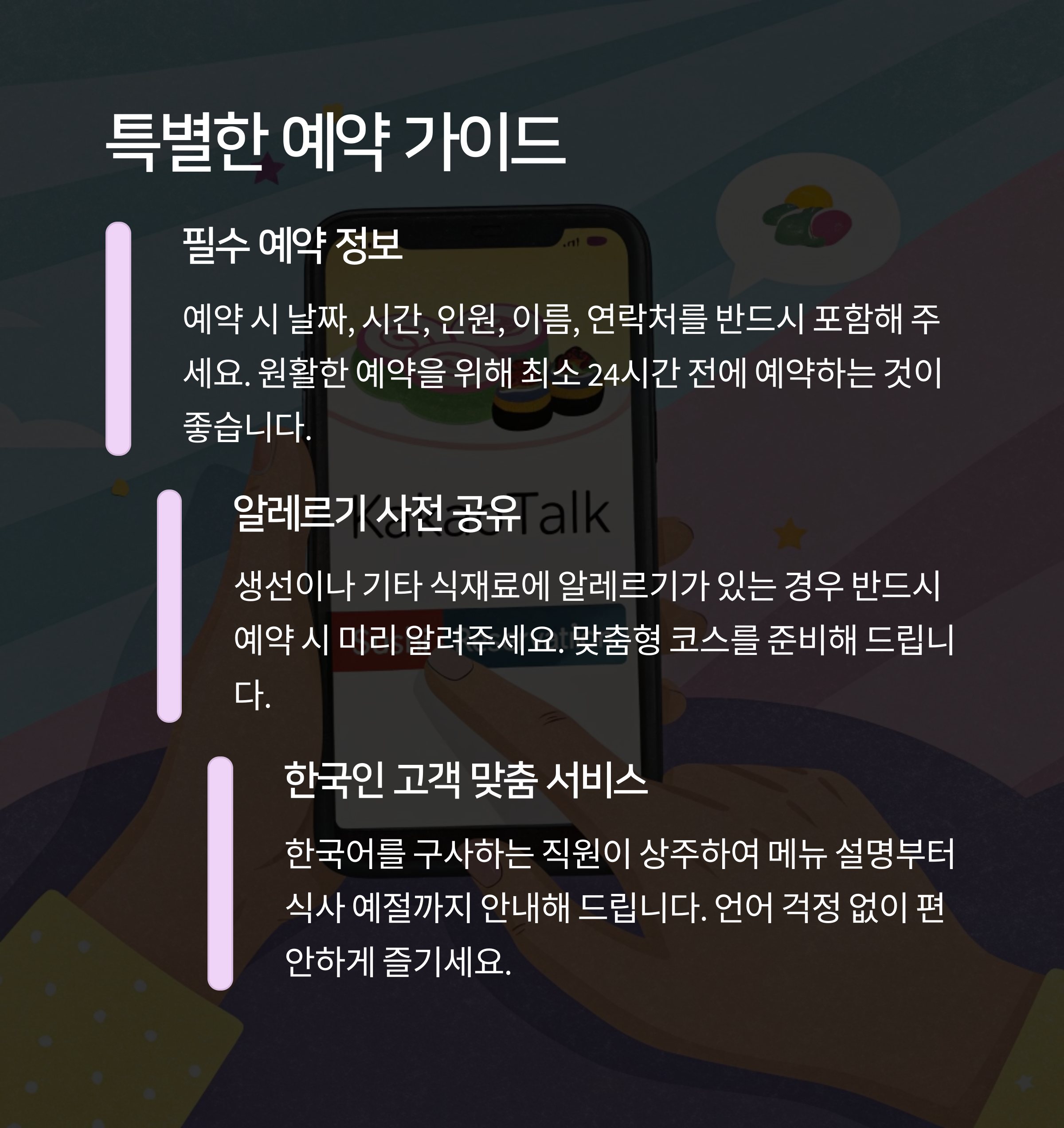 | Q. 스시 시이나는 예약 시 어떤 정보를 제공해야 하나요? |