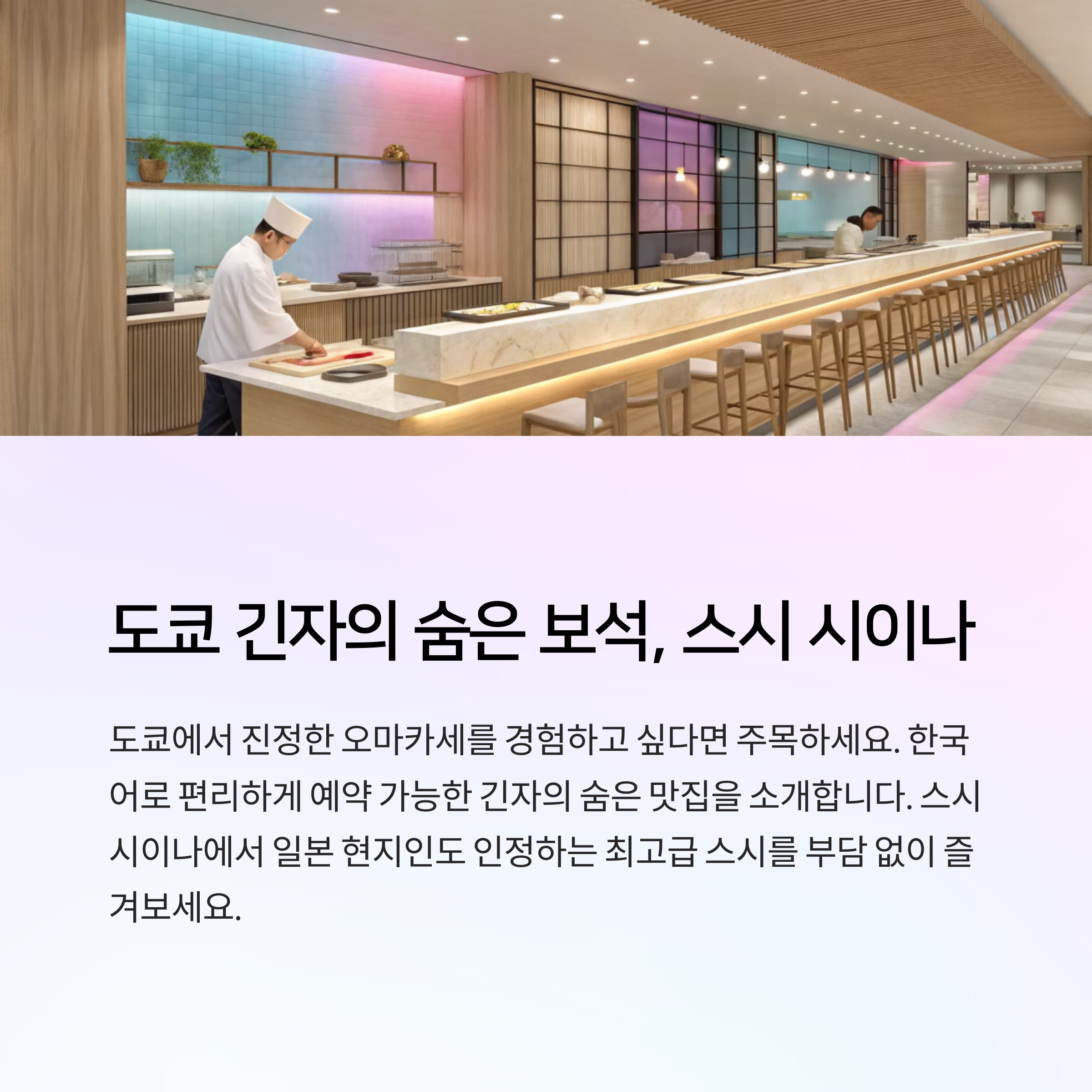 특히, 자기만의 스타일을 가진 스시 셰프는 매일 최상의 재료를 바탕으로 한 뚜렷한 음식 철학을 반영합니다.