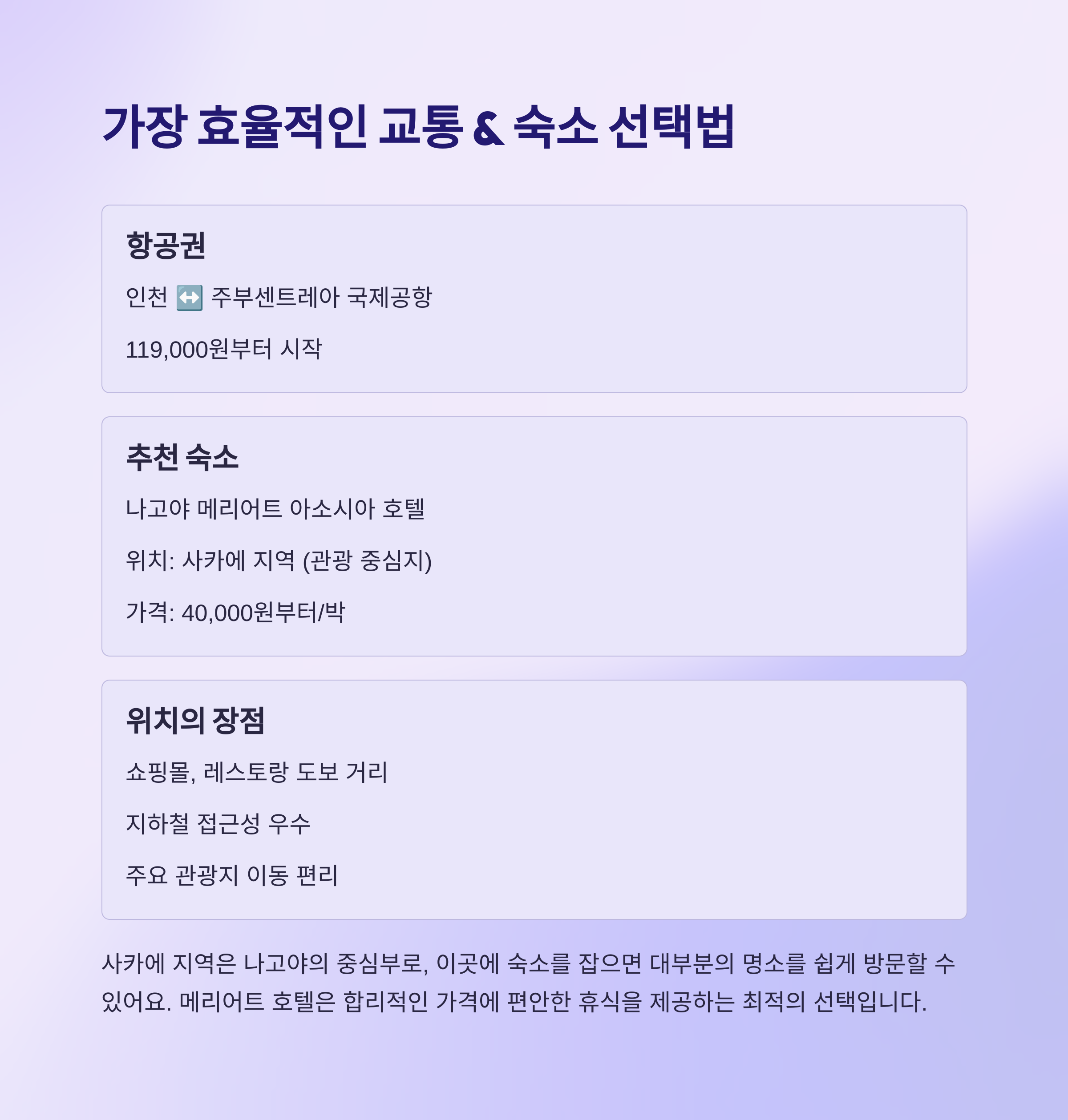 현지 정보를 바탕으로 꼭 필요한 실속 정보를 전달드리겠습니다. 알차고 경제적인 나고야 여행을 지금 함께 계획해 보세요!