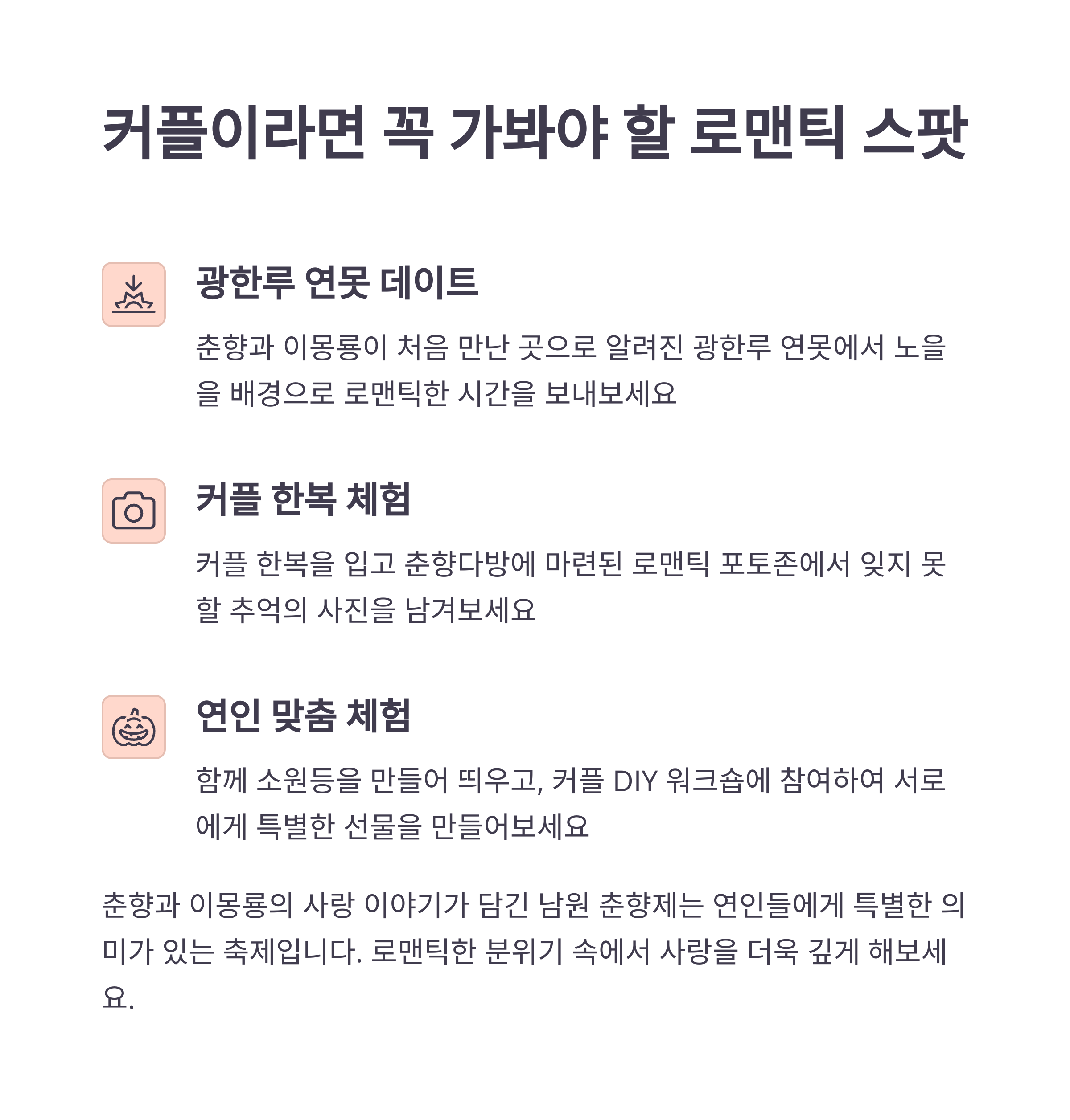 춘향과 이몽룡이 사랑을 키운 장소, 로맨틱 끝판왕 - 사랑의 언약 동전던지기 체험