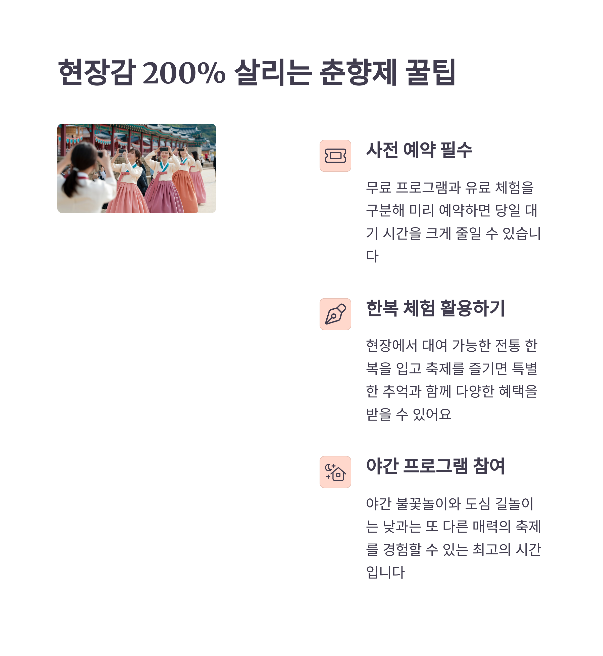 덜 붐비는 오전엔 전통체험 위주로,
