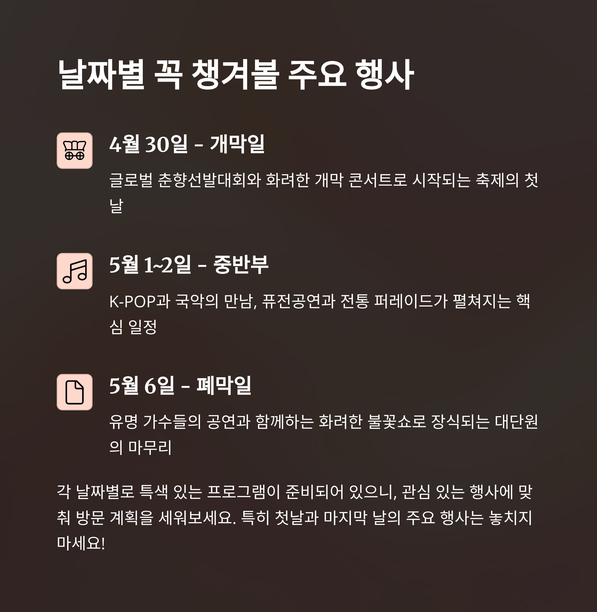 - 5/6 폐막공연 및 불꽃놀이 🎆