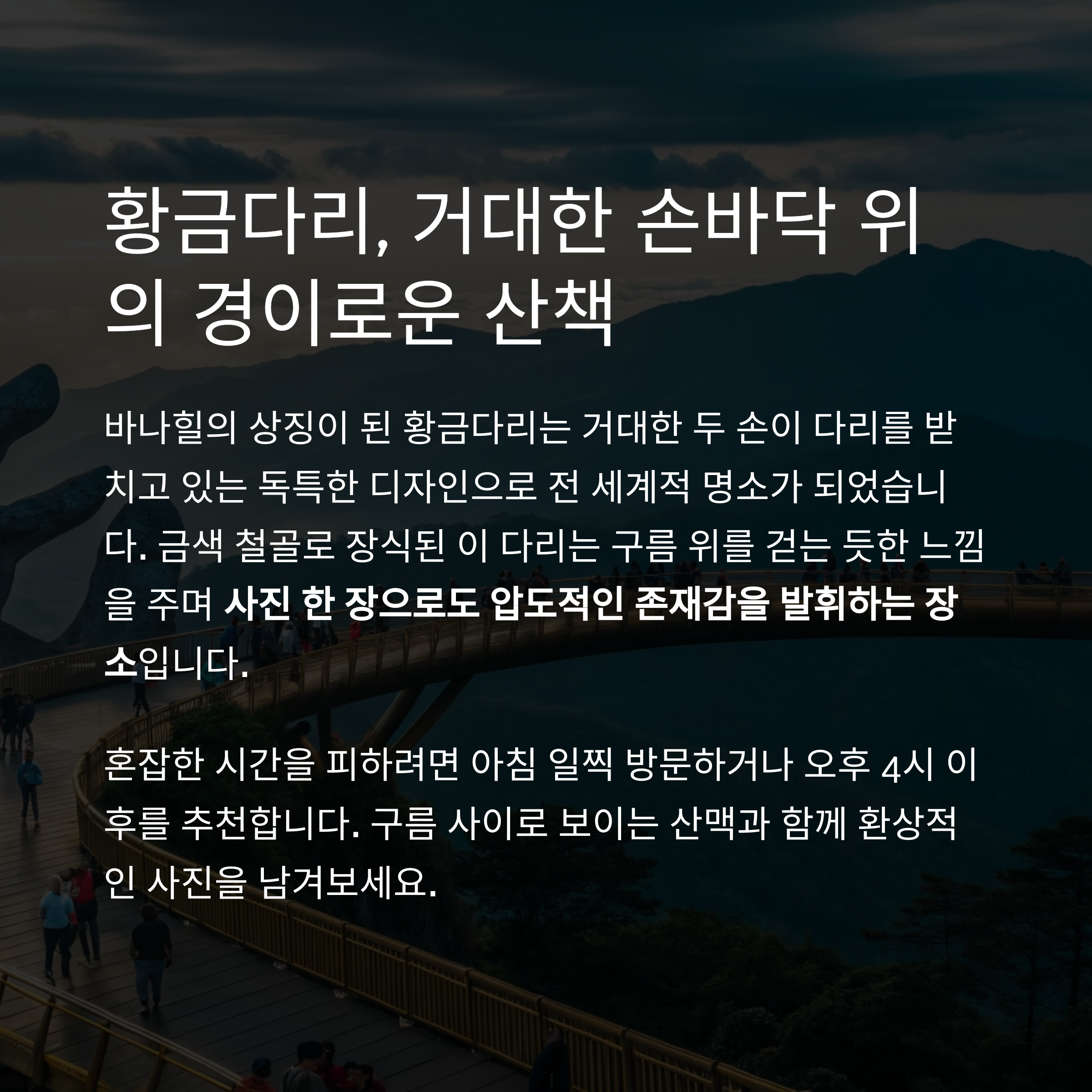 이번 글에서는 바나힐의 핵심 코스와 꿀팁, 가장 효율적인 동선, 그리고 가성비 높이는 방법까지 자세히 소개해 드리겠습니다.
