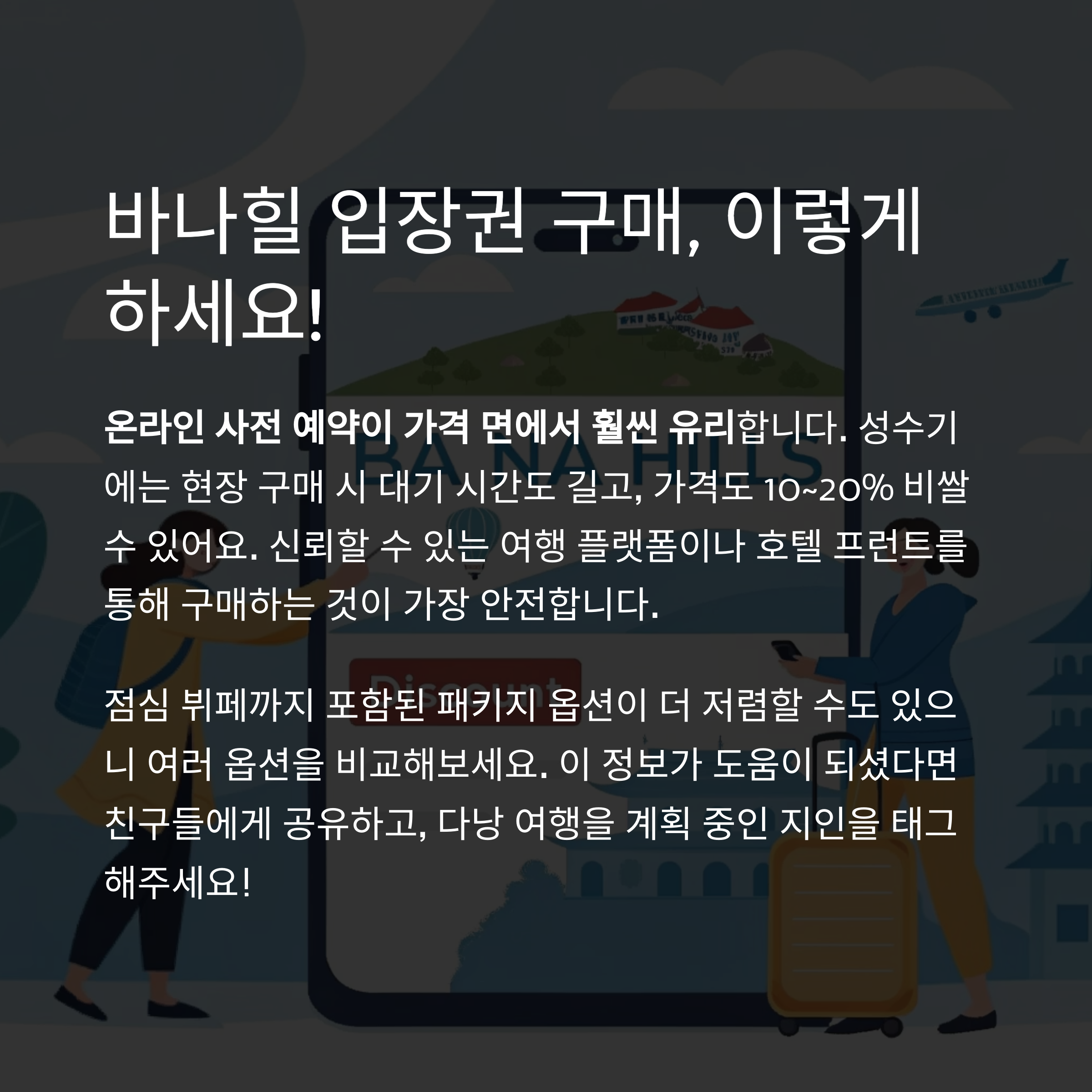바나힐 입장권은 온라인 사전 예약이 가격 면에서 훨씬 유리합니다.