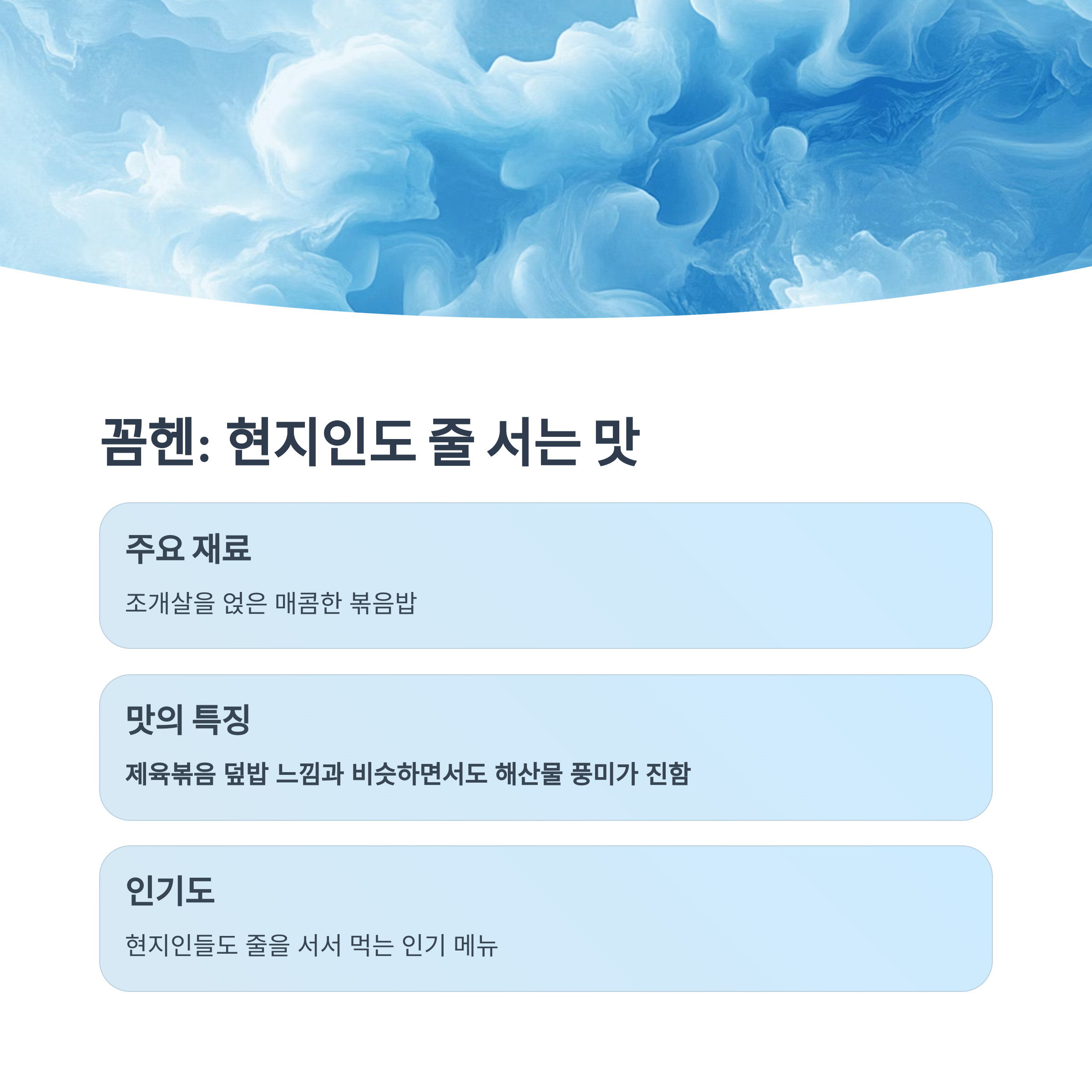 꼼헨은 조개살을 얹은 매콤한 볶음밥으로,