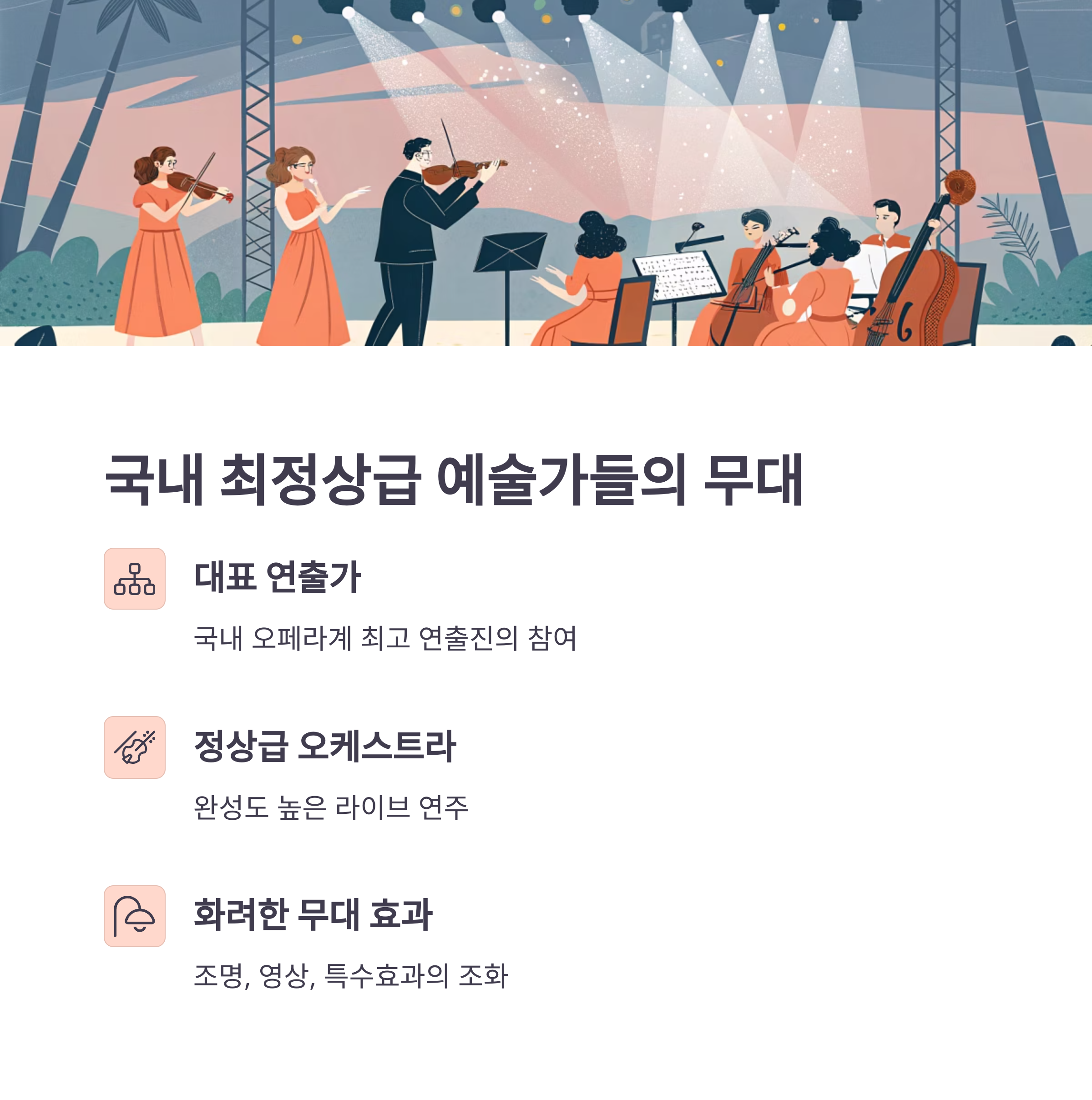 오케스트라는 국내 정상급 교향악단이 함께하여 완성도를 더했습니다.