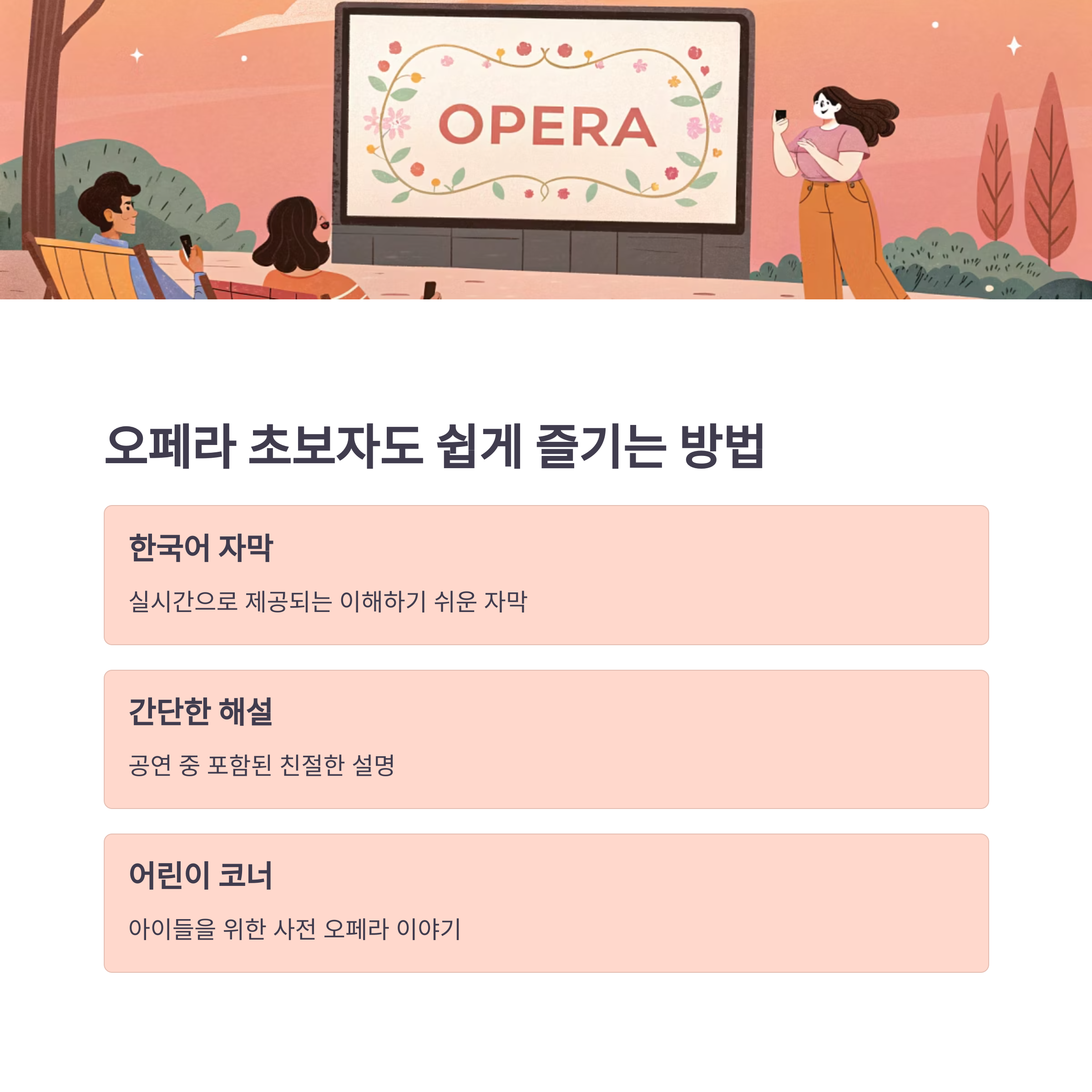 오페라 초보자도 쉽게 즐길 수 있도록 구성된 해설과 자막