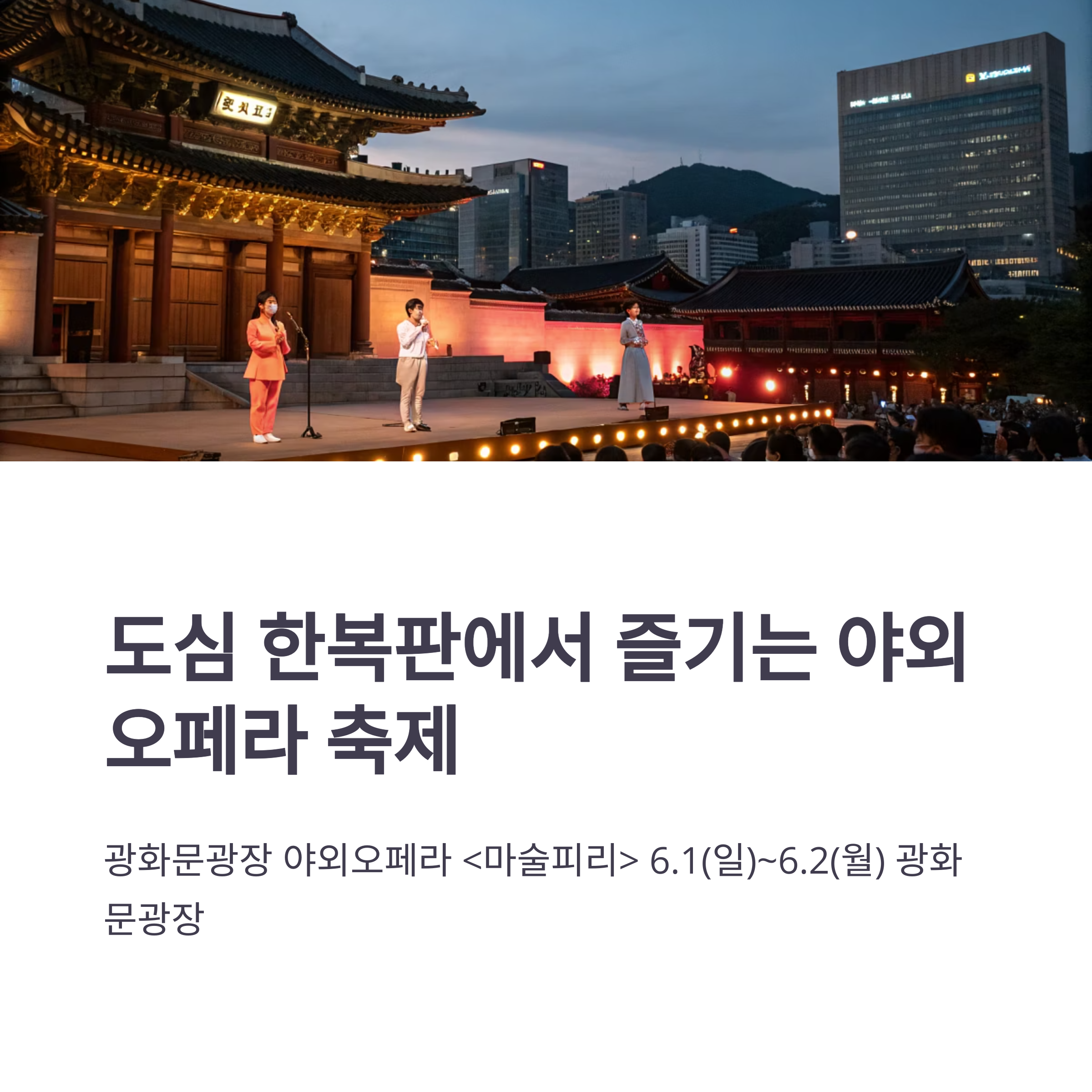 2025년 6월 1일부터 2일까지, 서울의 중심 광화문광장에서 야외 오페라 <마술피리>가 공연됩니다.