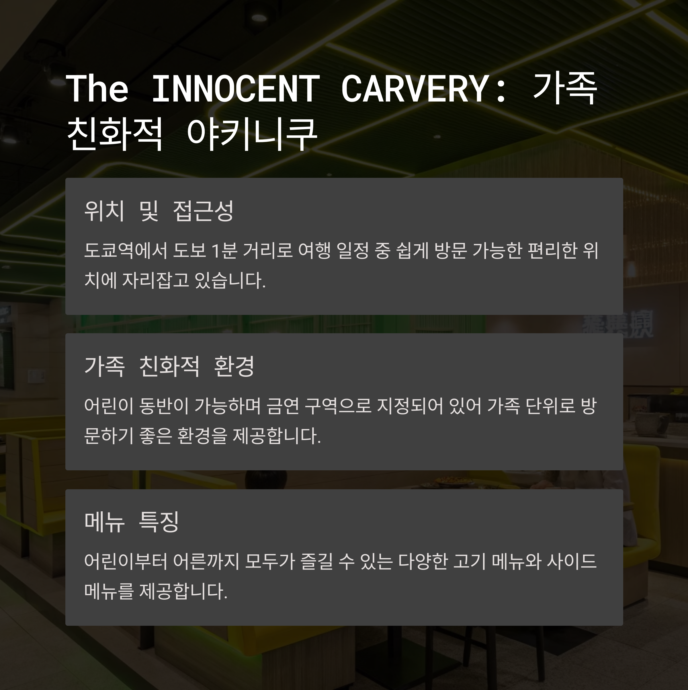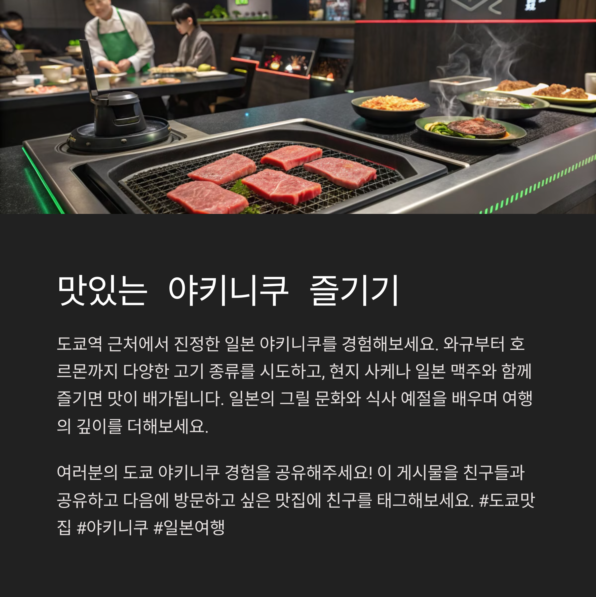 마지막으로, 음식을 넘어 도쿄의 문화로도 이어지는 야키니쿠 외식을 즐기시길 바랍니다.