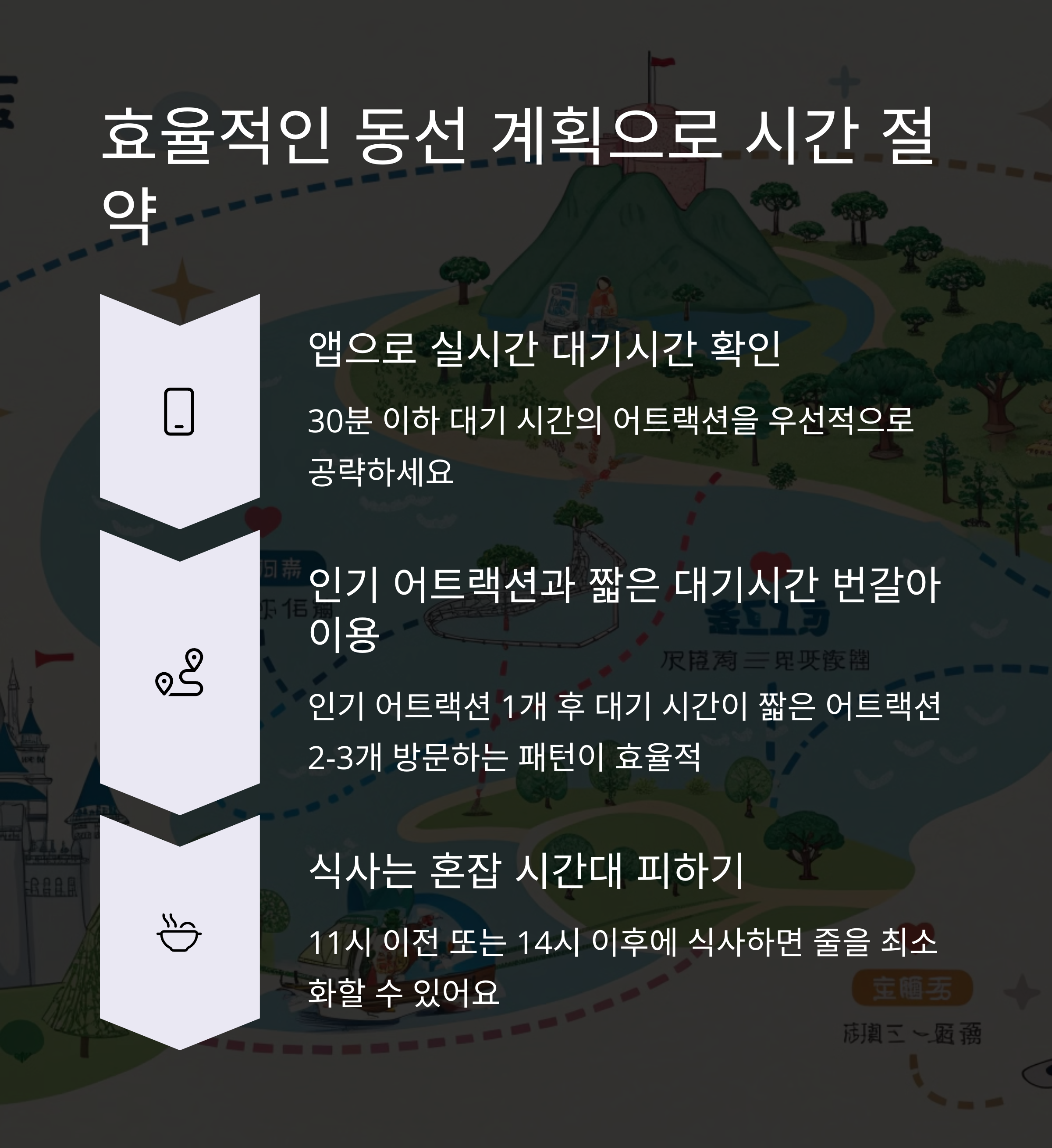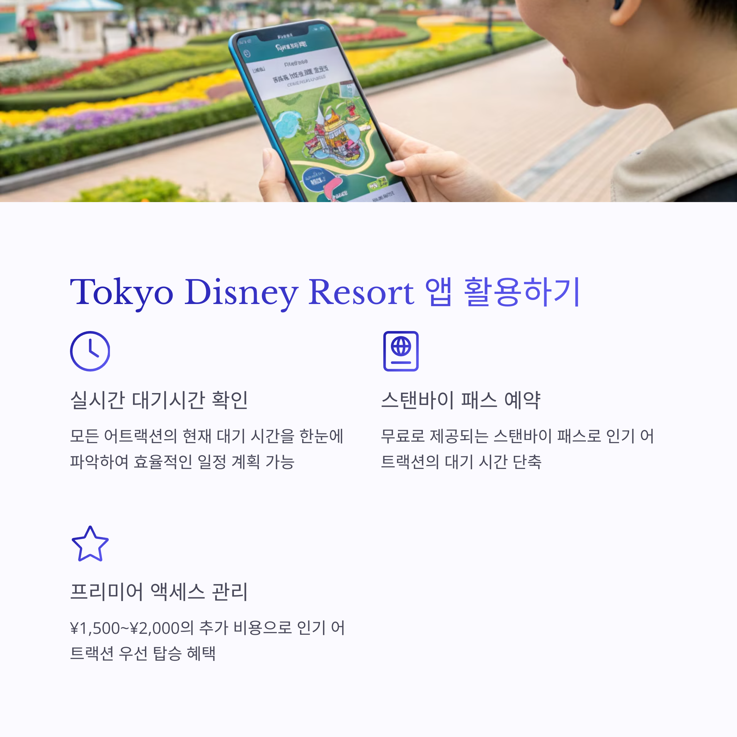 | 디즈니 앱 | 대기시간 확인, 예약 등 필수 기능 제공 |