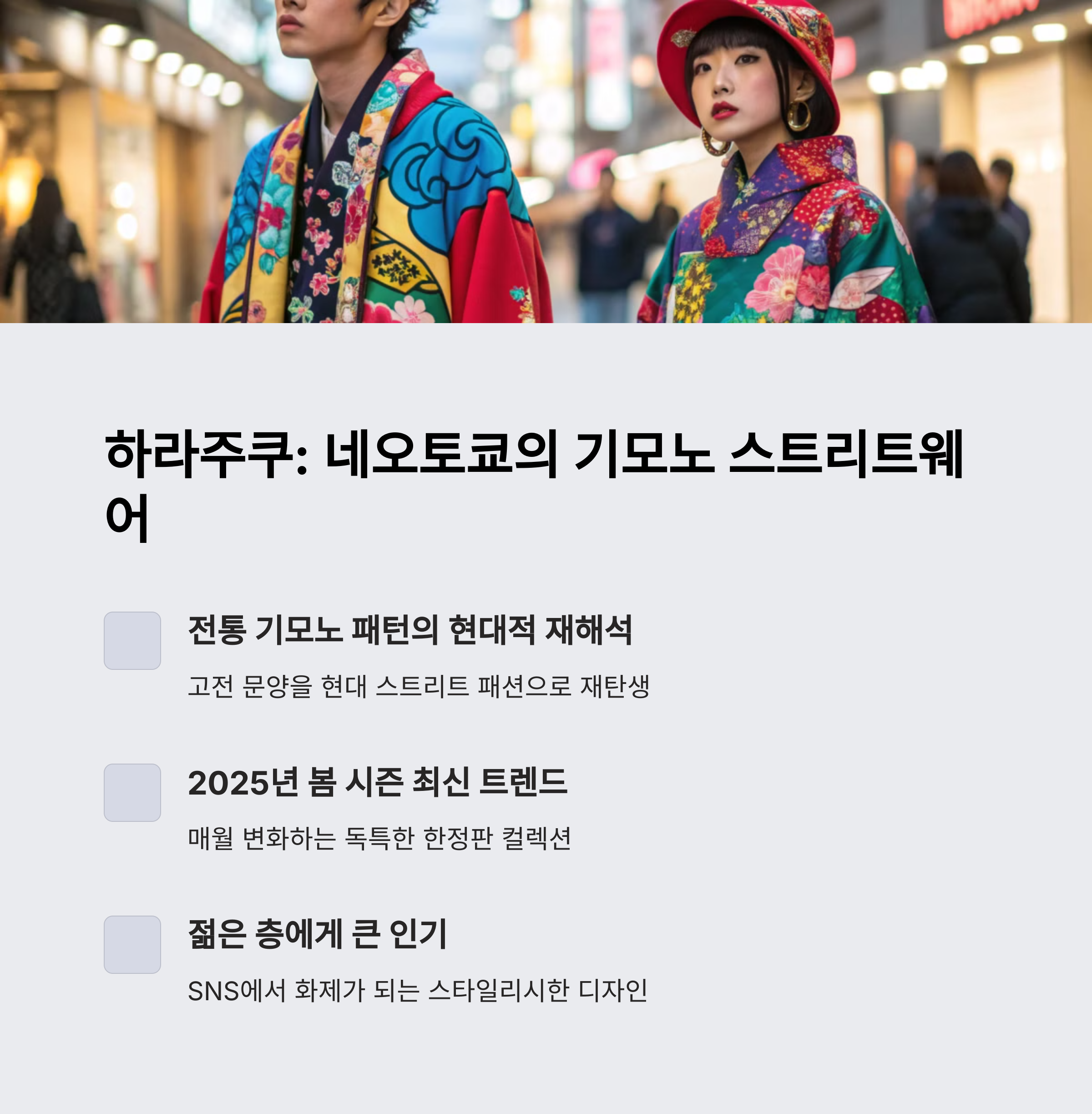 | 하라주쿠 | 전통 기모노 패턴을 현대적으로 재해석한 패션 브랜드 '네오토쿄' |