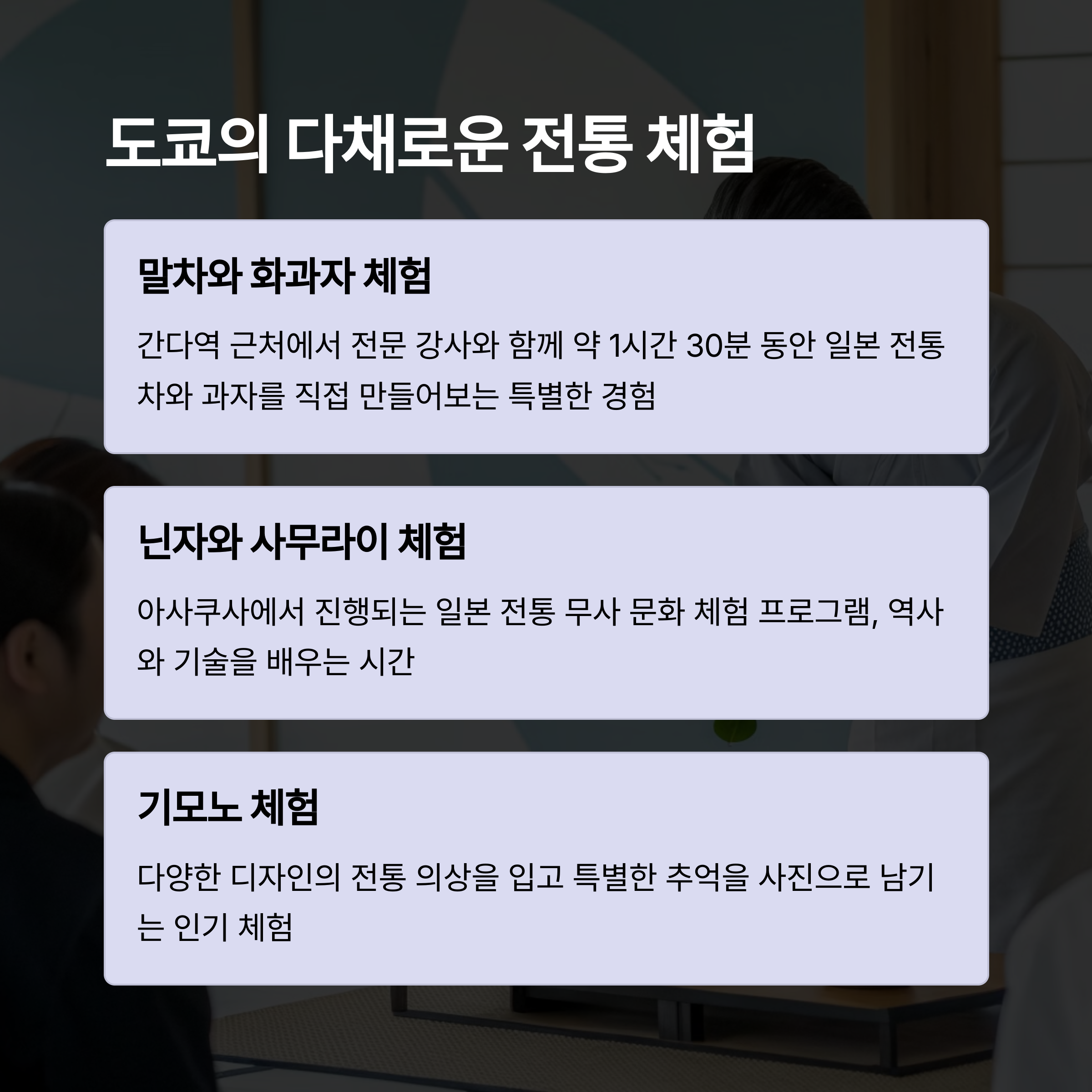 오늘은 도쿄 전통문화 체험에 대해 소개해 드릴게요.