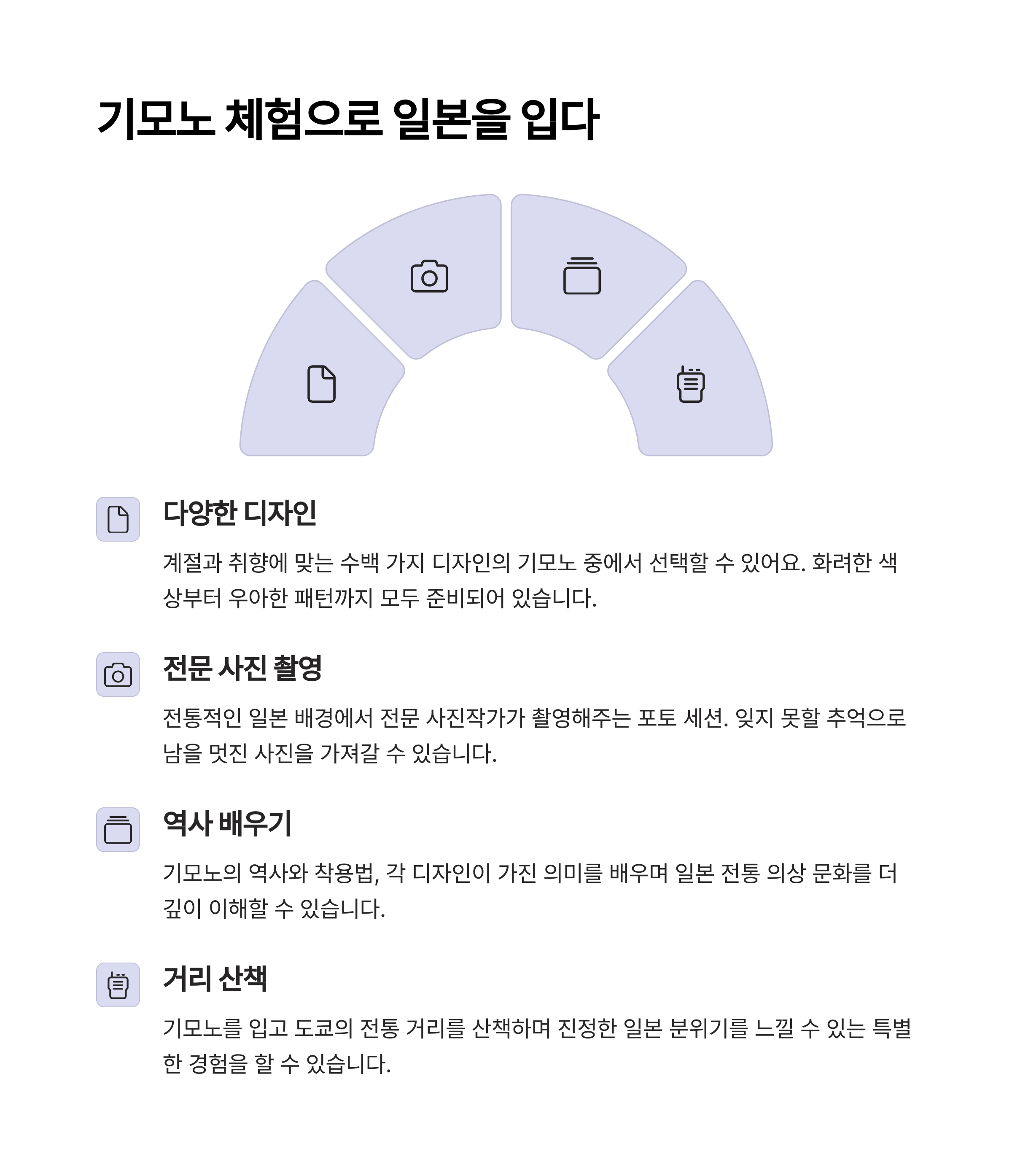 | Q. 기모노 대여 체험 후 무엇을 하면 좋을까요? |
