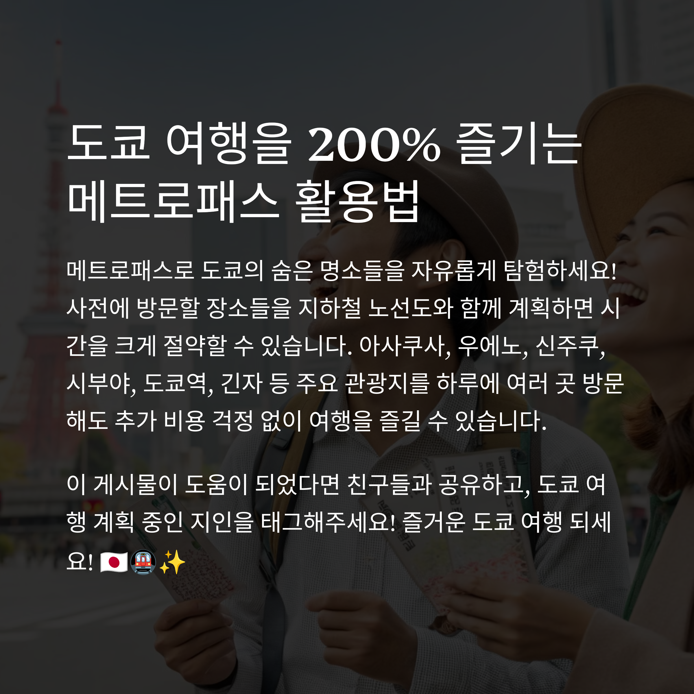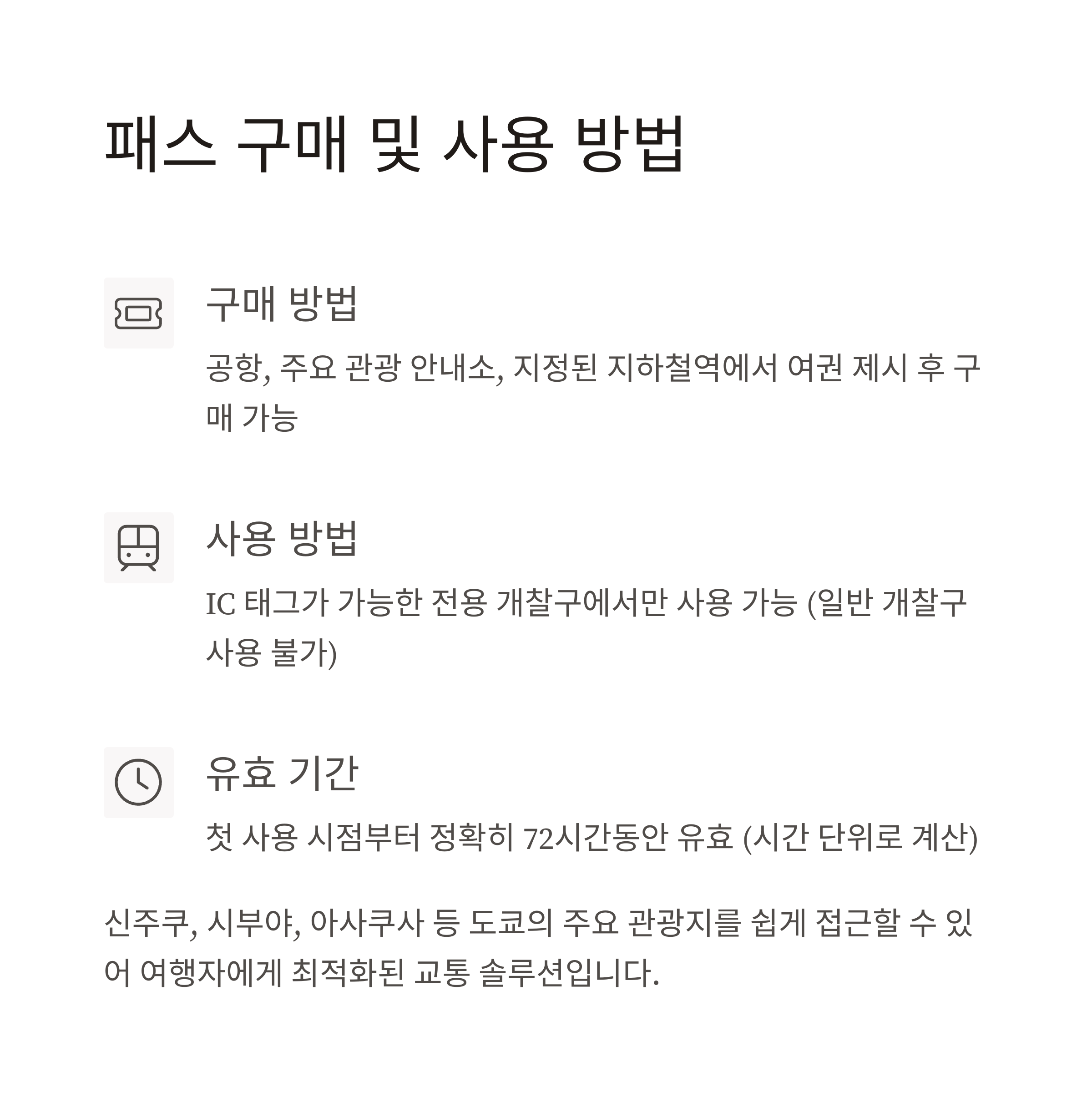 특히 도쿄의 주요 관광지를 저비용으로 방문하려는 여행자라면 필수템입니다.