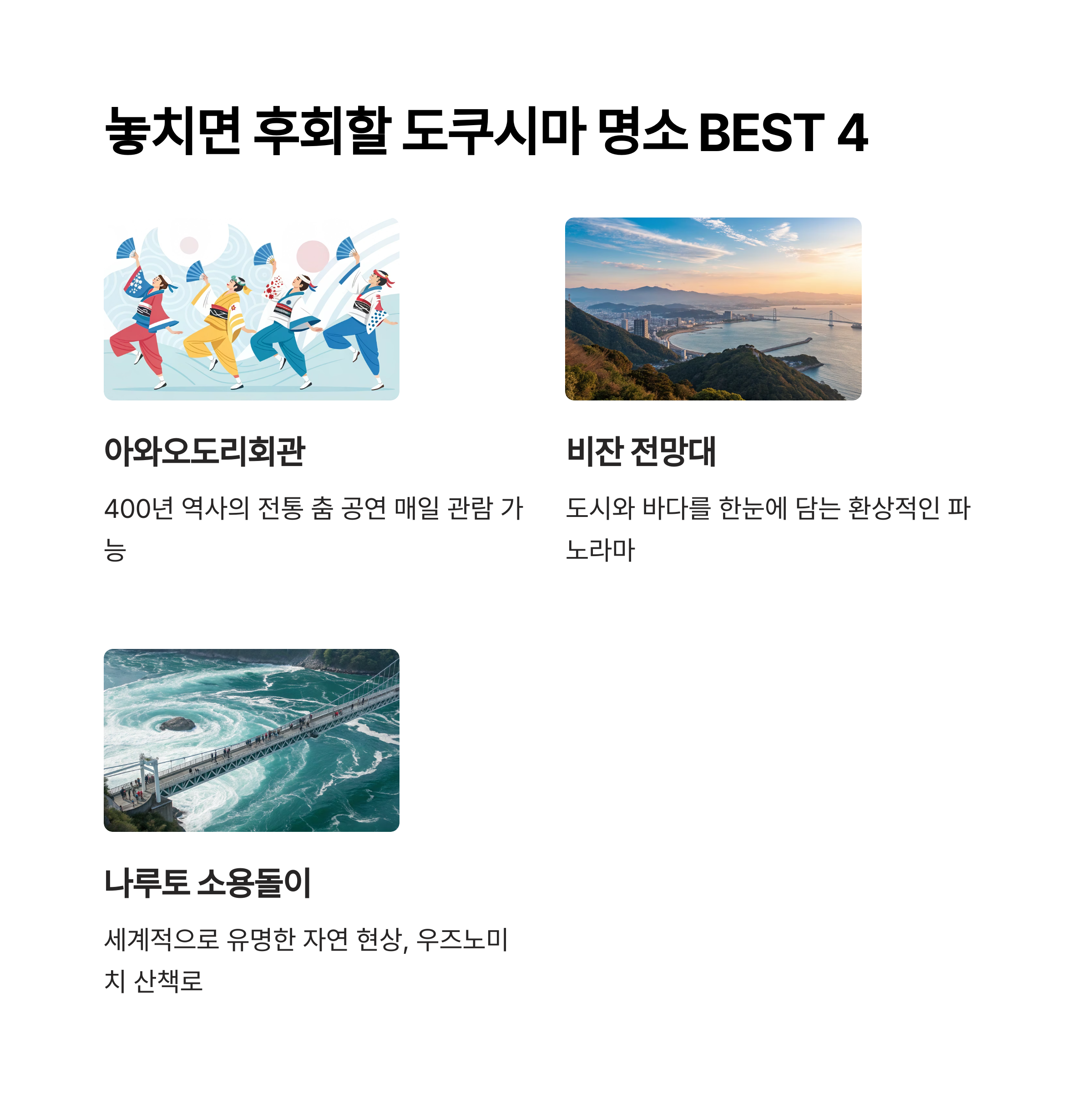 | Q. 도쿠시마에서 꼭 가봐야 할 주요 관광 명소는 어디인가요? |