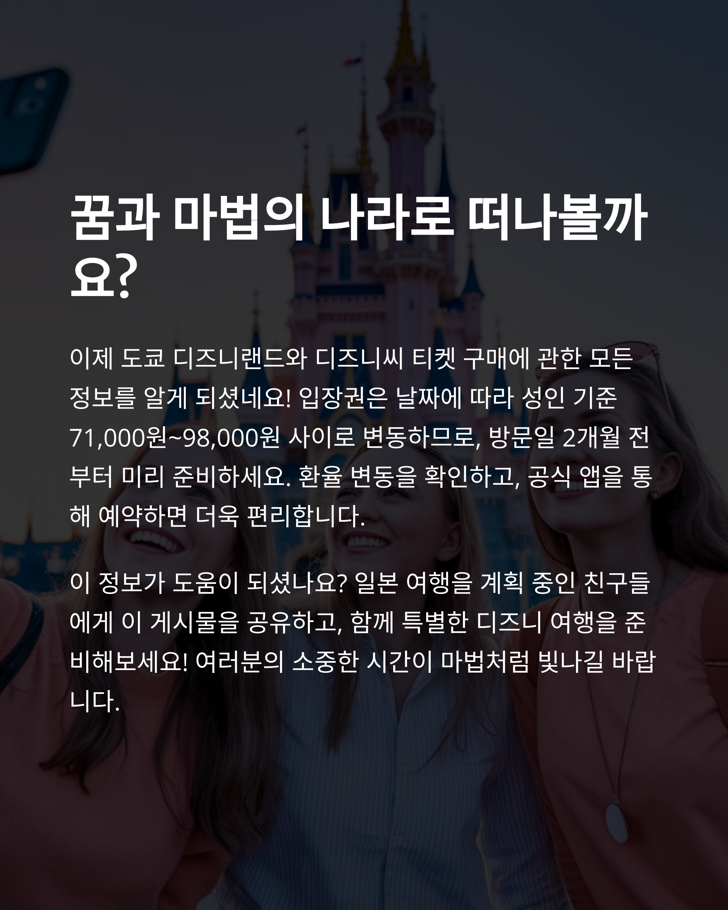 안녕하세요, 지금 떠나 볼까와 함께하는 여행자님! 오늘은 도쿄 디즈니랜드 입장권에 대한 정보를 전달드리겠습니다.