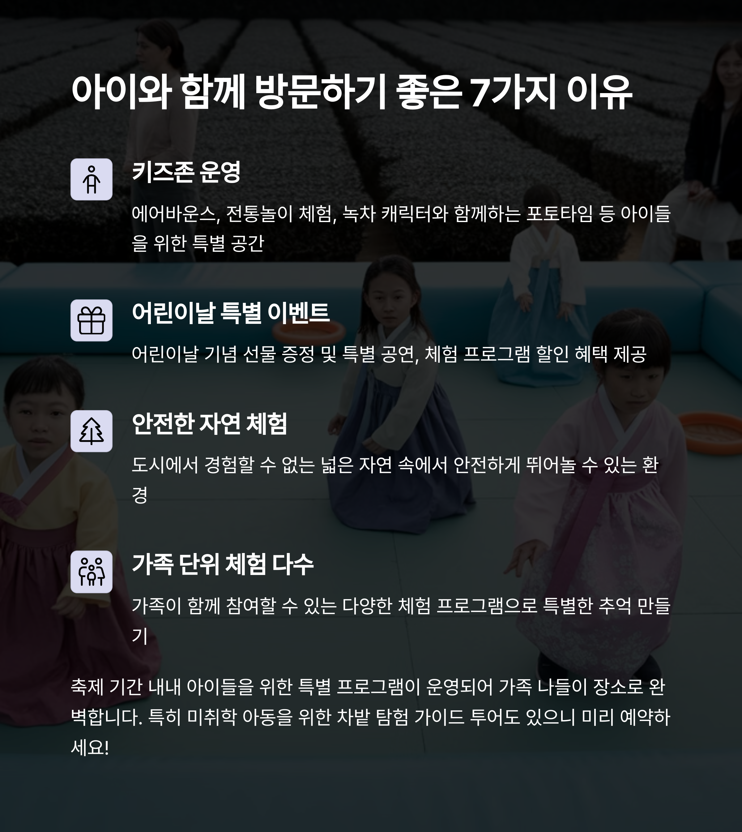 교육과 체험을 동시에 만족시킬 수 있습니다.