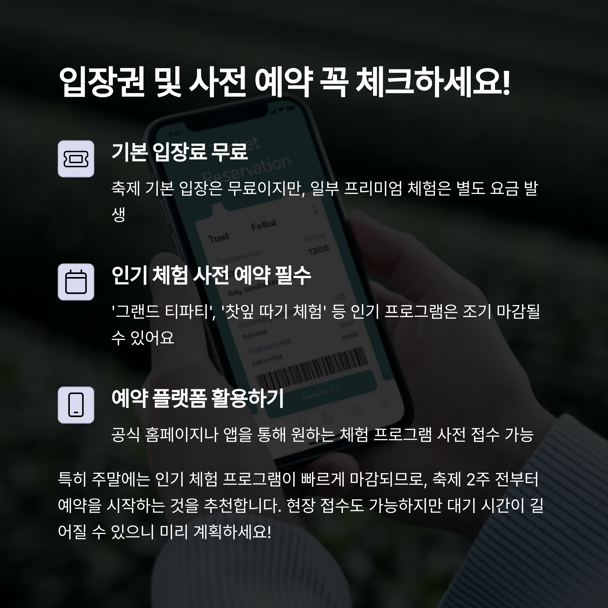 "현장접수보다 사전예약이 훨씬 유리해요."