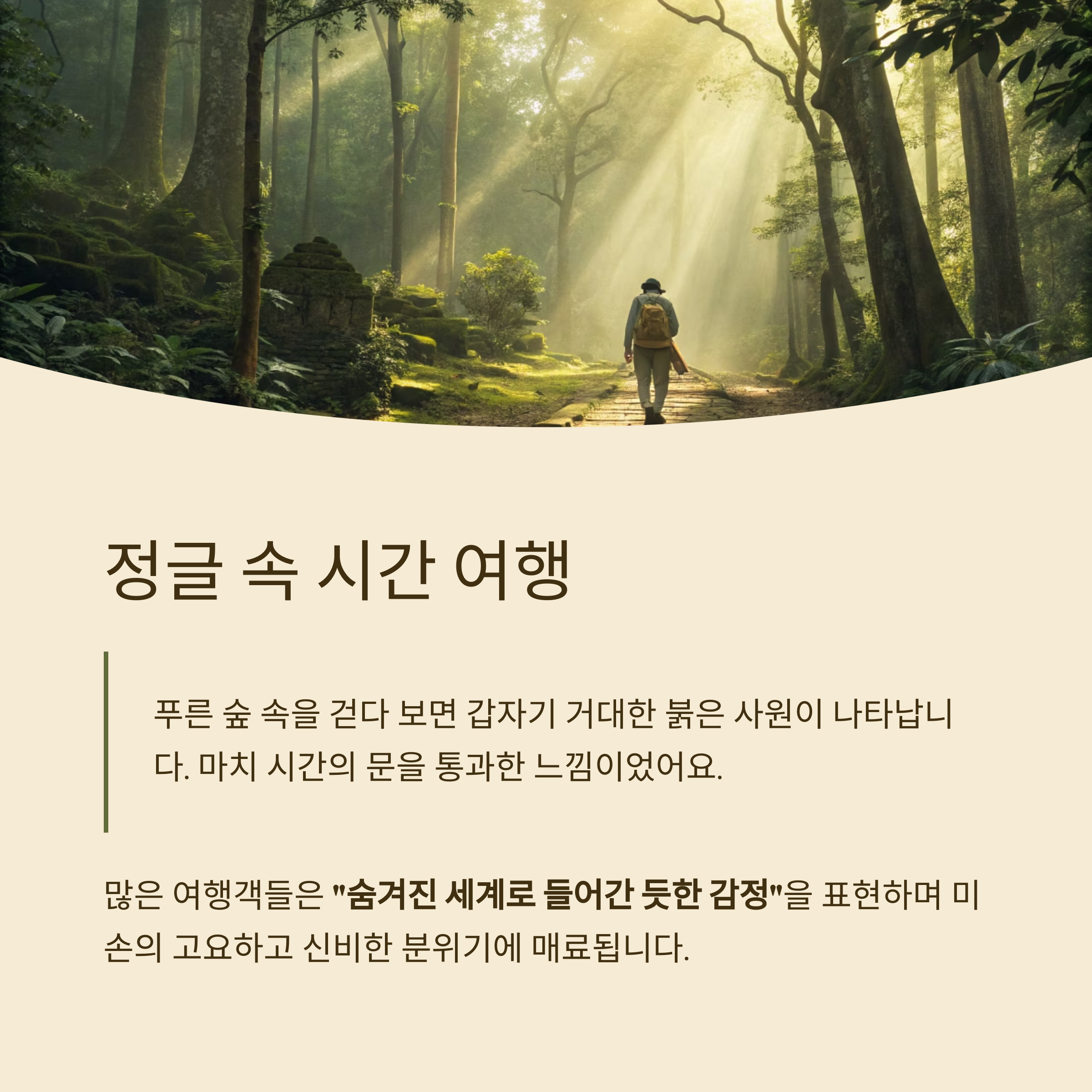 많은 여행객들은 **"숨겨진 세계로 들어간 듯한 감정"**을 표현하며