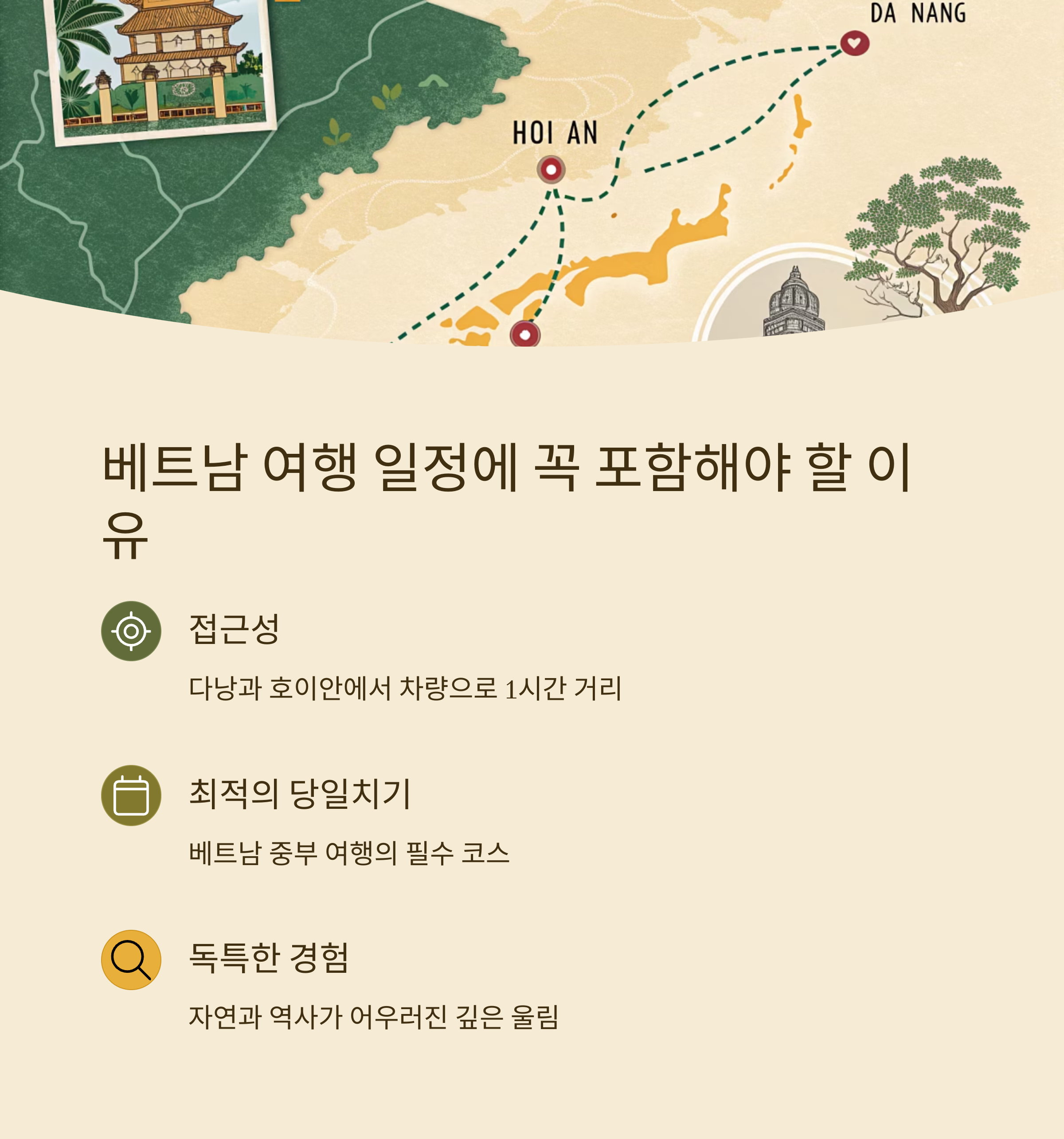 베트남 중부 여행자들에게 최적의 당일치기 코스로 손꼽힙니다.