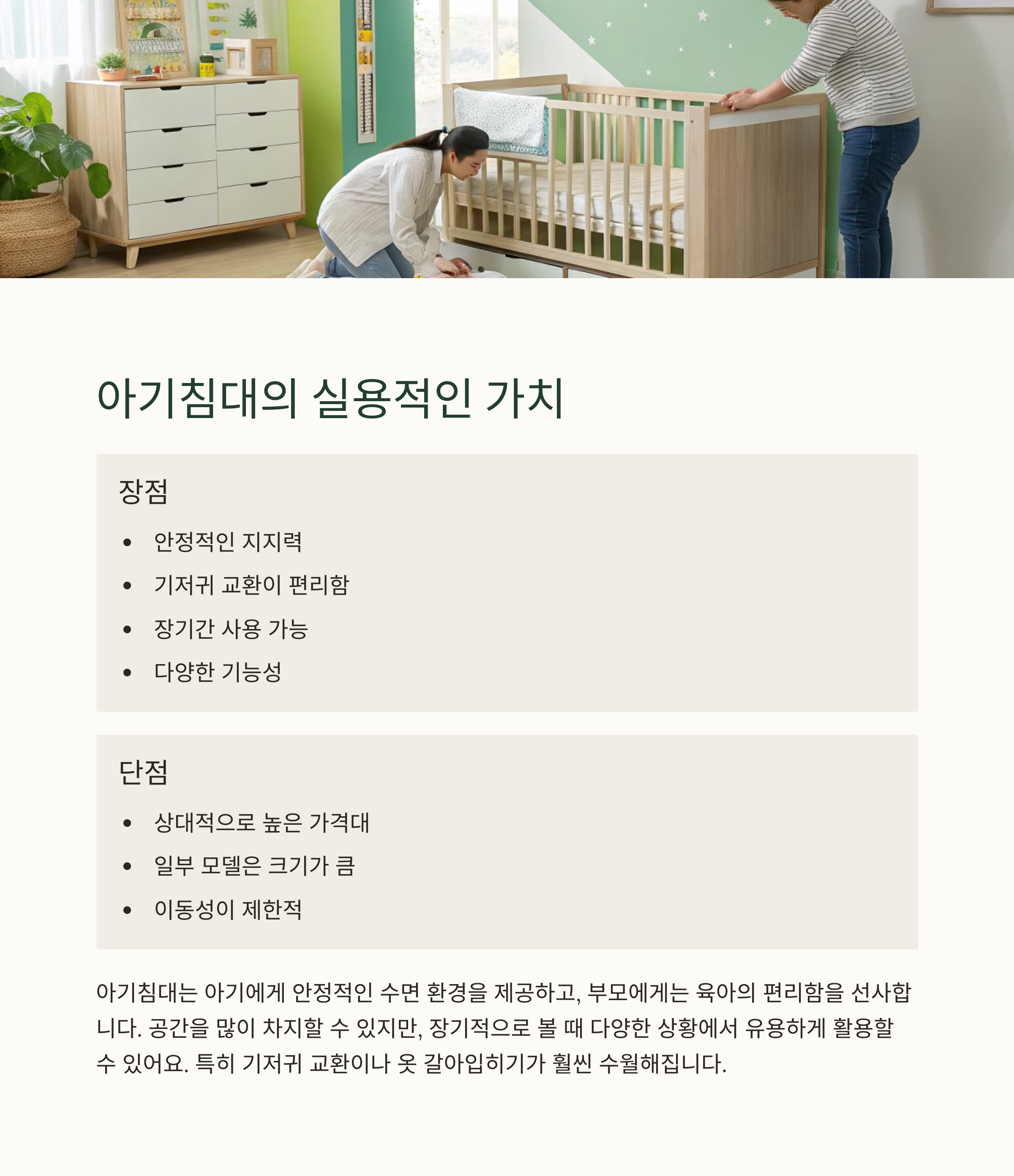 아기침대는 기능성과 오랜 사용성을 제공하기 때문에 투자 가치가 높은 편입니다.