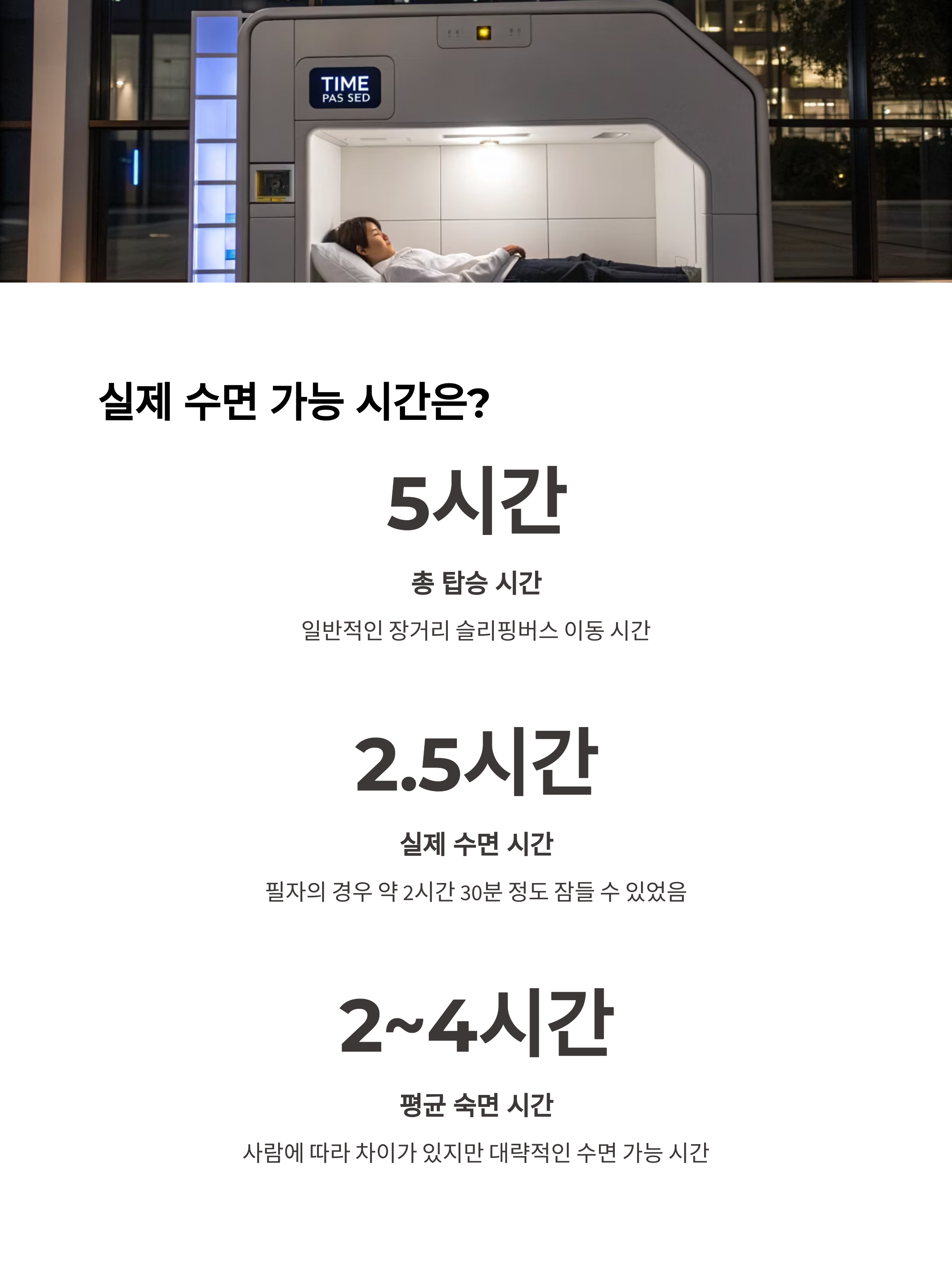 저의 경우, 5시간 탑승 중 실제로 잠든 시간은 약 2시간 30분 정도였습니다.