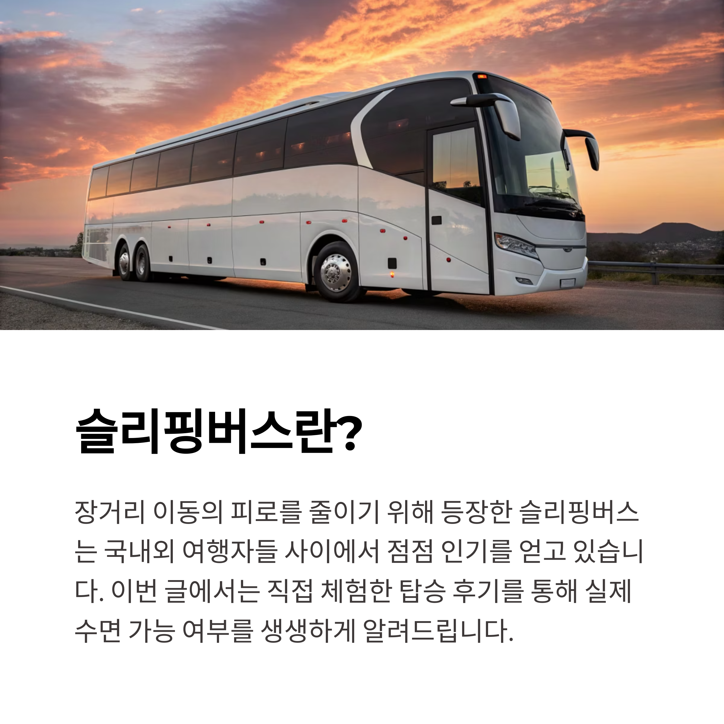 이번 글에서는 직접 체험한 슬리핑버스 탑승 후기를 통해, 장점과 단점, 실제 수면 가능 여부를 생생하게 알려드립니다.