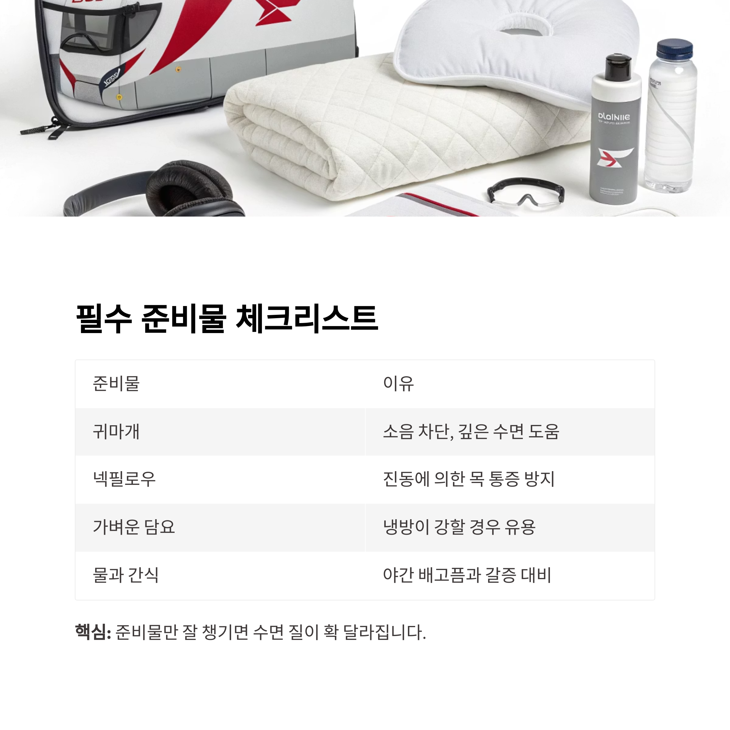 핵심: 준비물만 잘 챙기면 수면 질이 확 달라집니다.