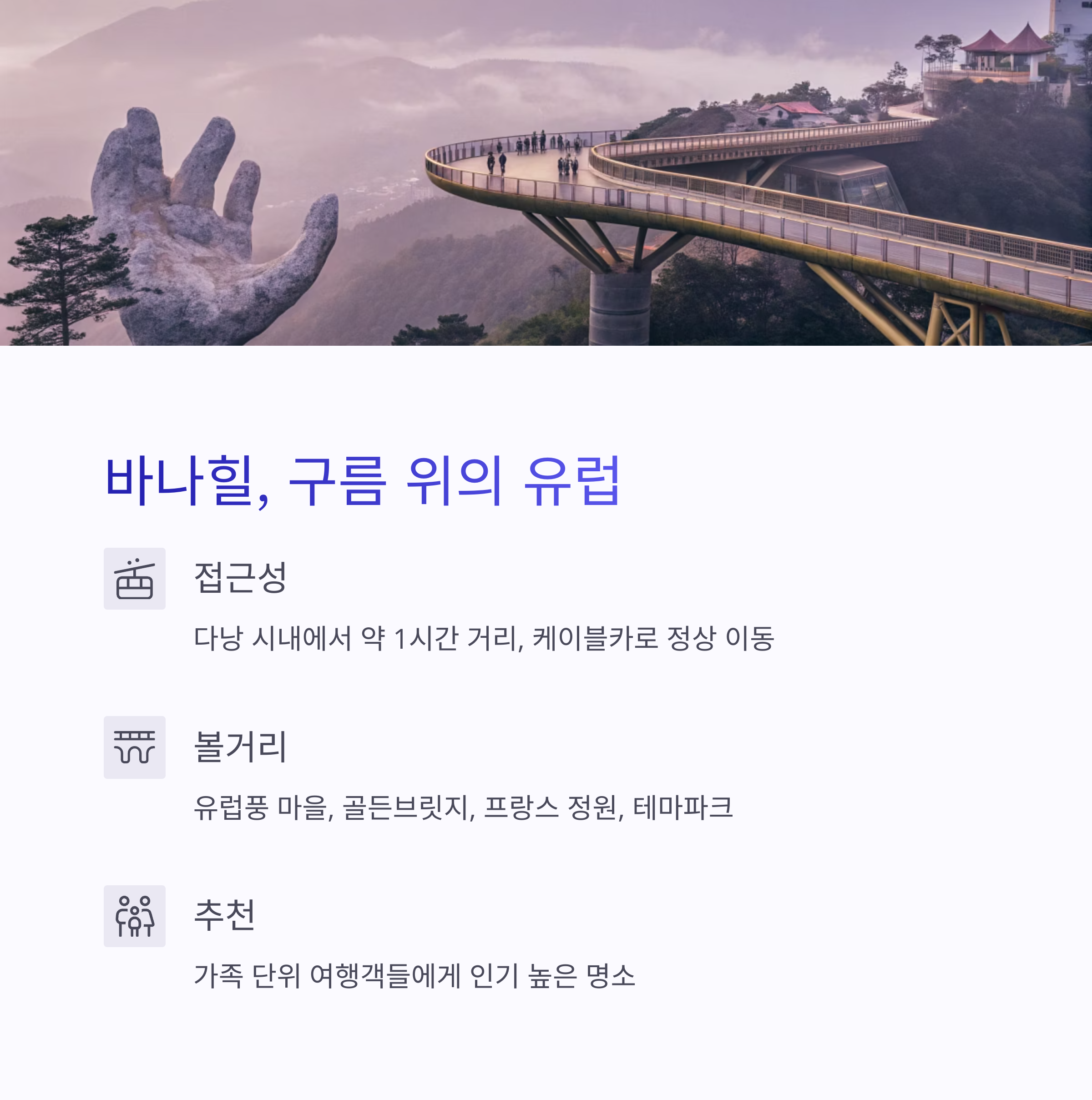 "유럽을 닮은 베트남"이라 불리는 바나힐은 다낭 시내에서 약 1시간 거리입니다.