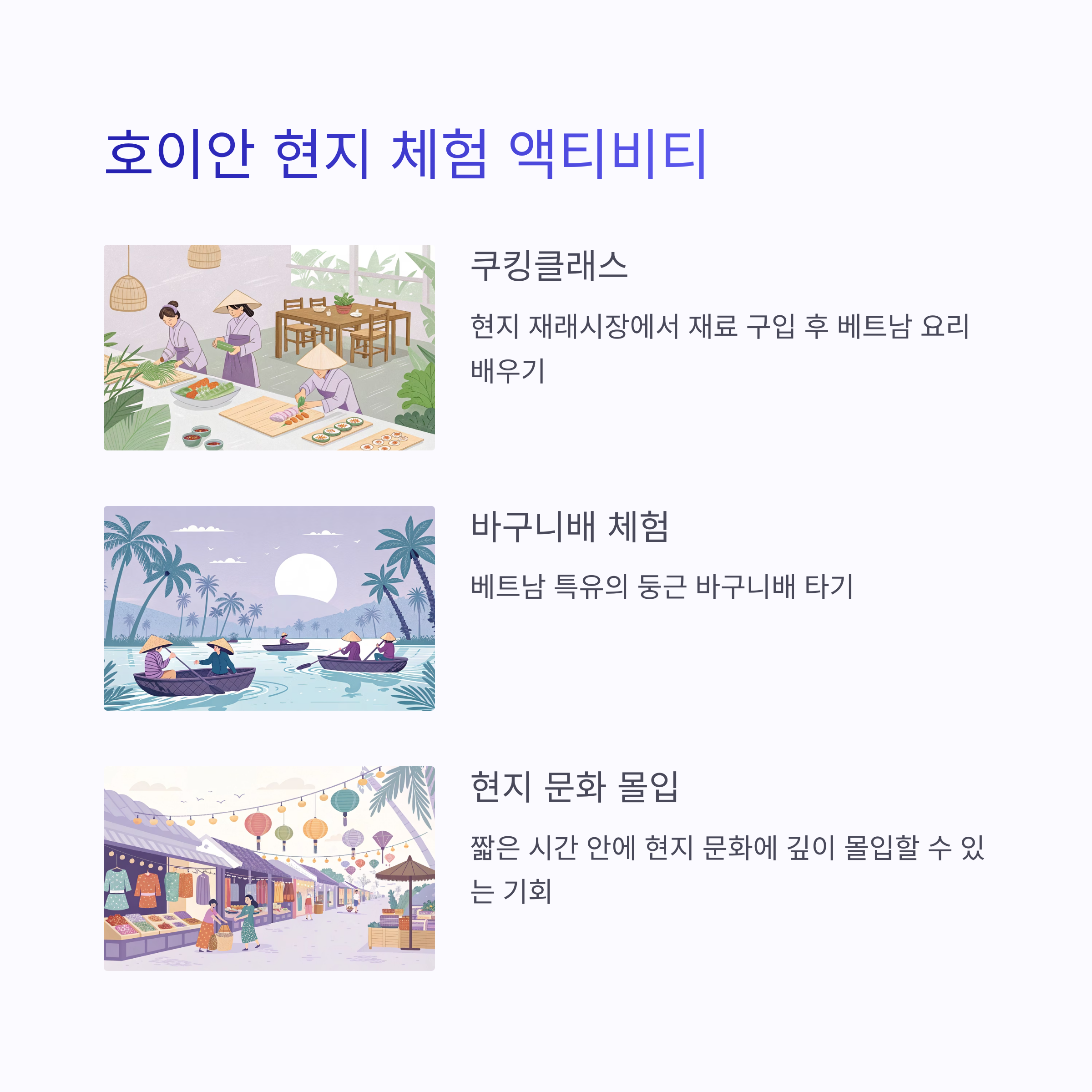 호이안에서는 단순한 관광을 넘어 다양한 현지 체험이 가능합니다.