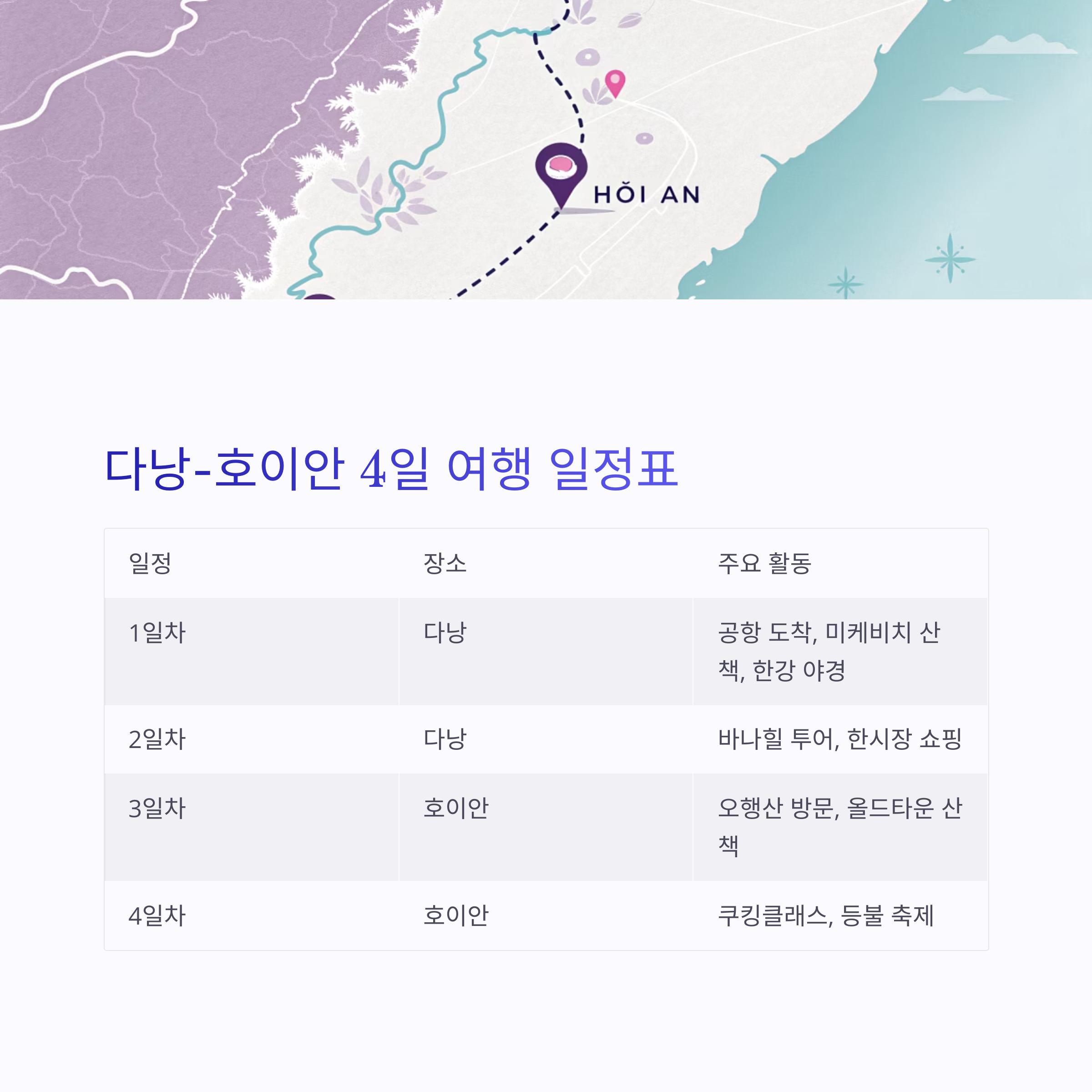 다낭-호이안 여행 일정표 예시