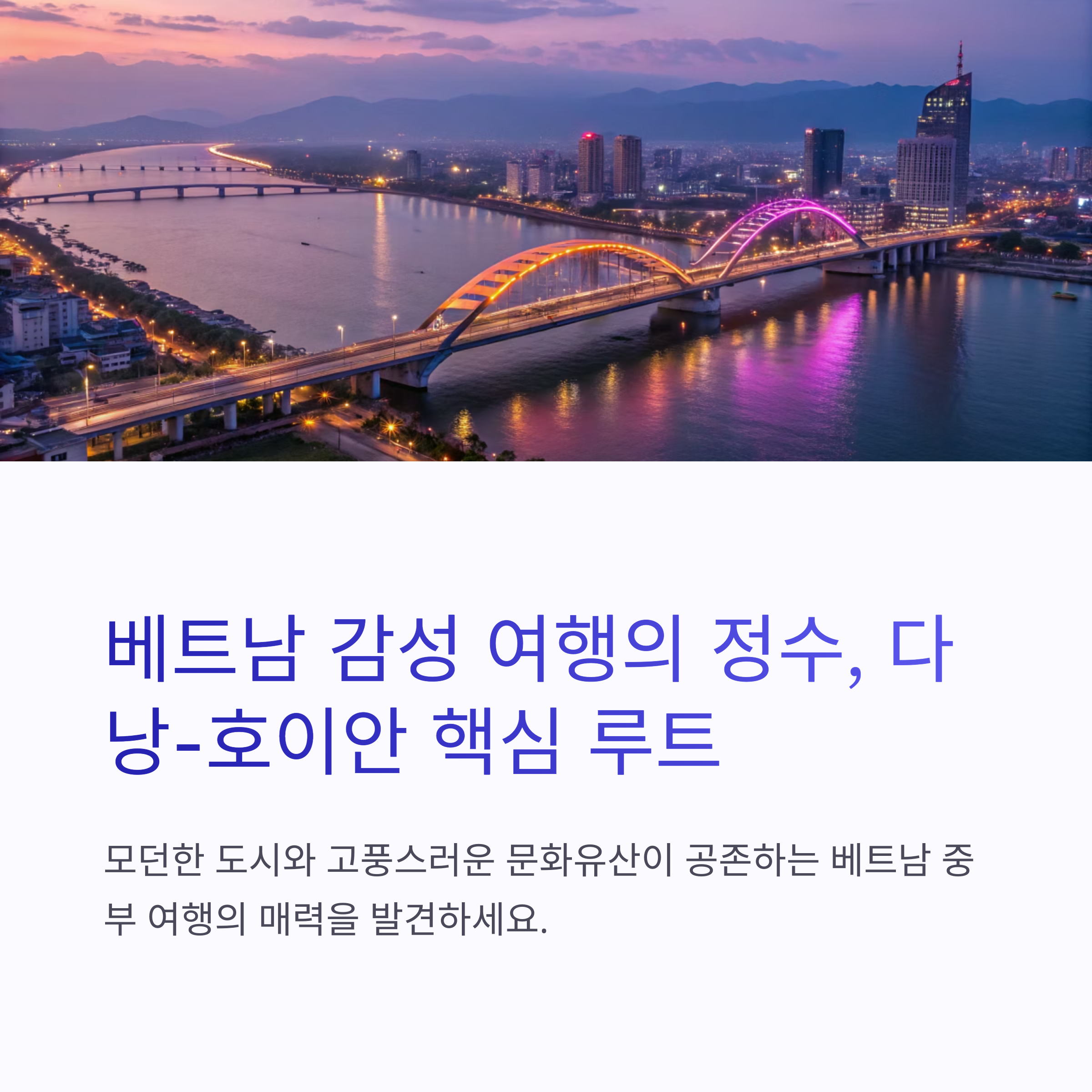 다낭과 호이안은 베트남 중부를 대표하는 도시로, 관광객 사이에서 가장 인기 있는 여행 코스를 자랑합니다.