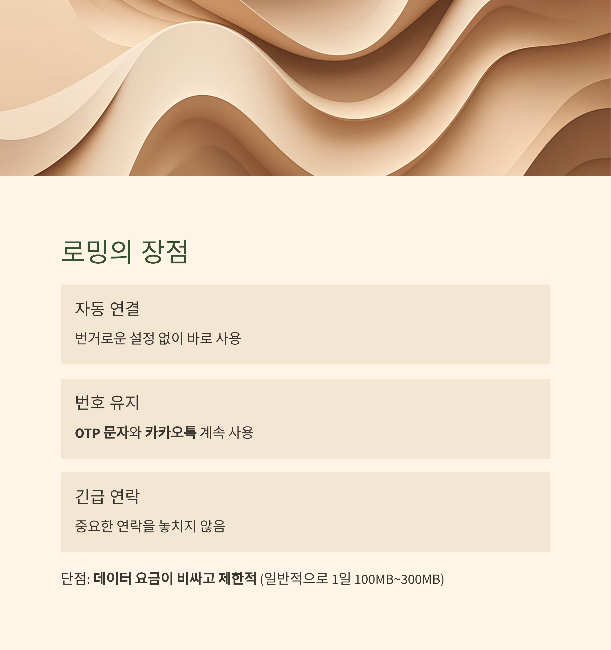 단기 출장자나 번호 유지가 중요한 상황에서는 로밍이 실용적일 수 있습니다.