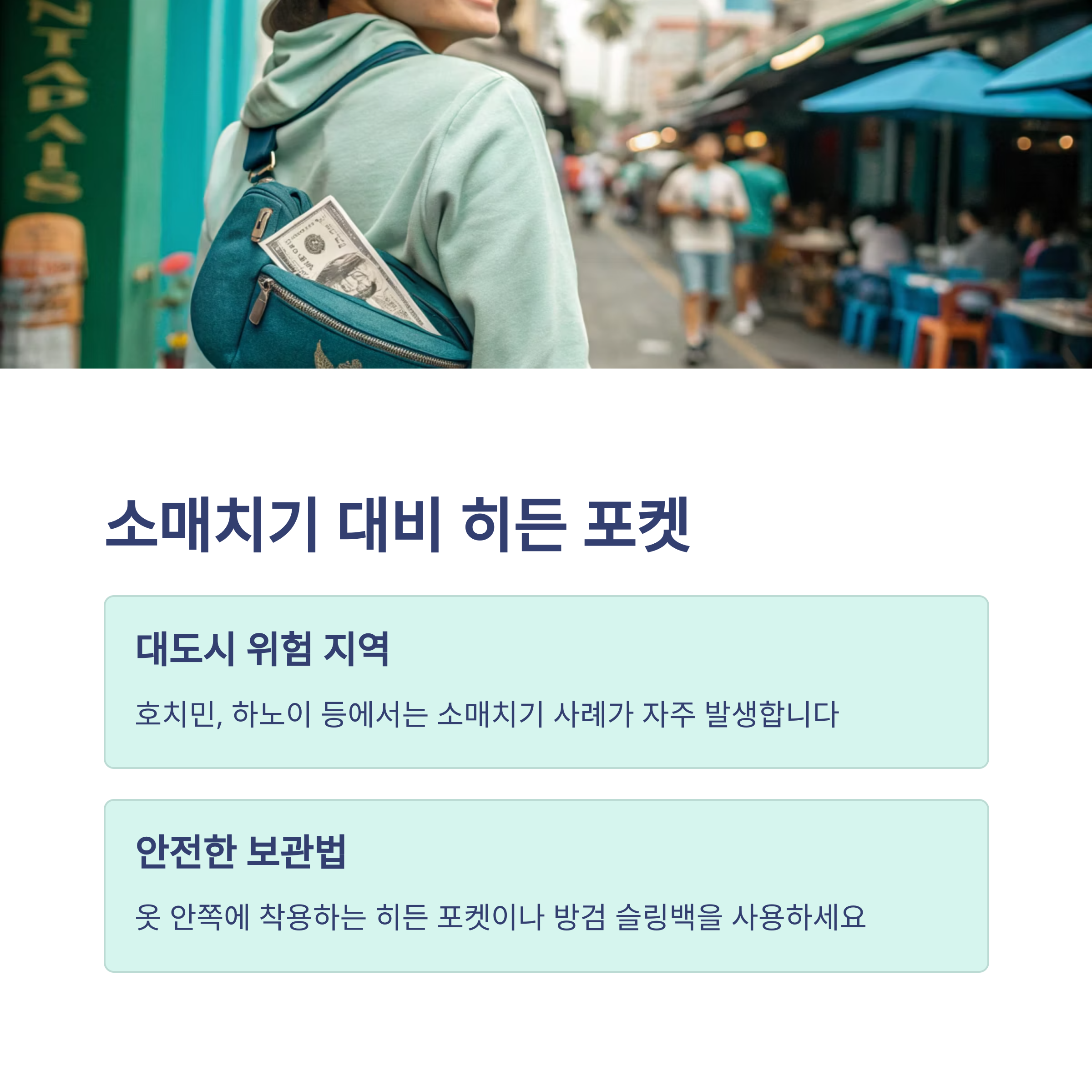 호치민, 하노이 등 대도시에서는 소매치기 사례가 자주 발생합니다.