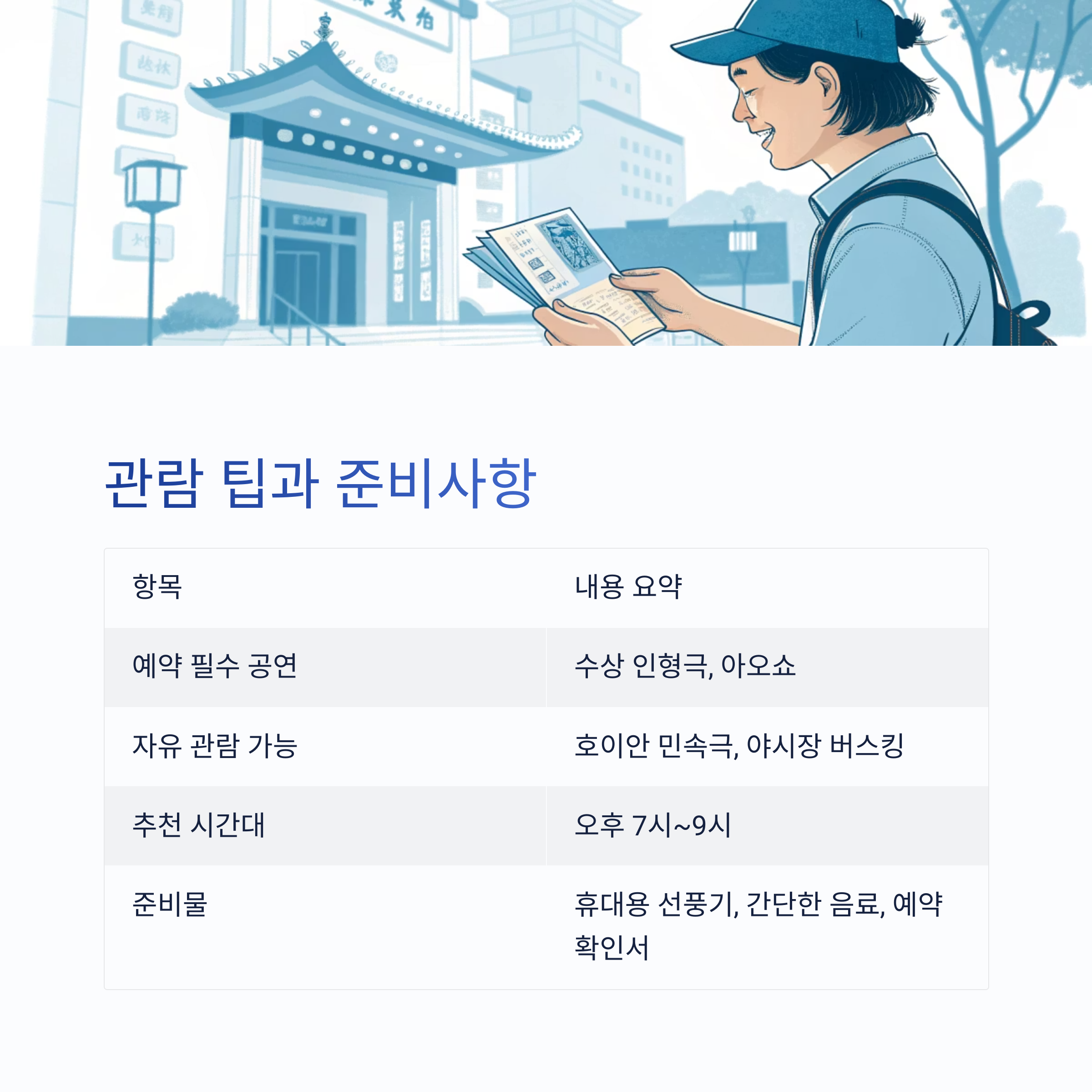 | 자유 관람 가능 | 호이안 민속극, 야시장 버스킹 |