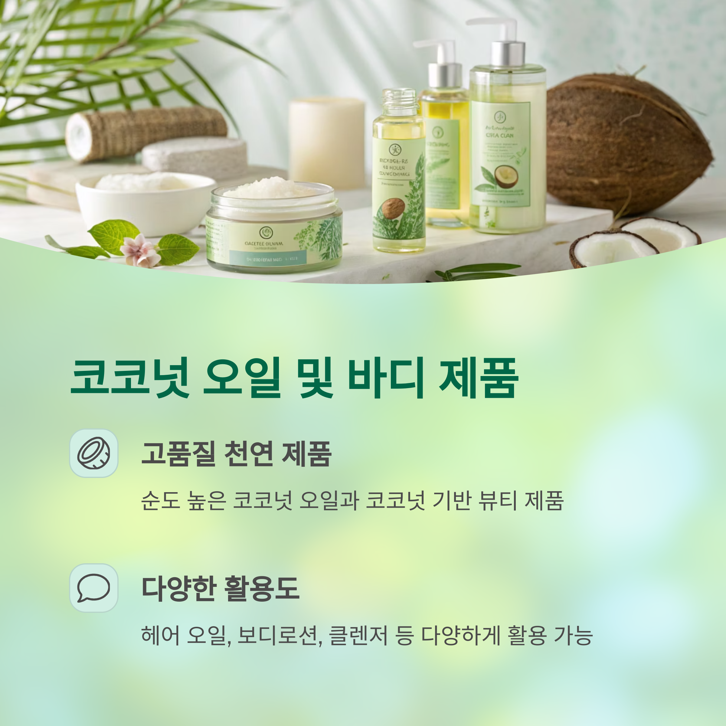천연 성분 가득, 코코넛 오일 및 바디 제품
