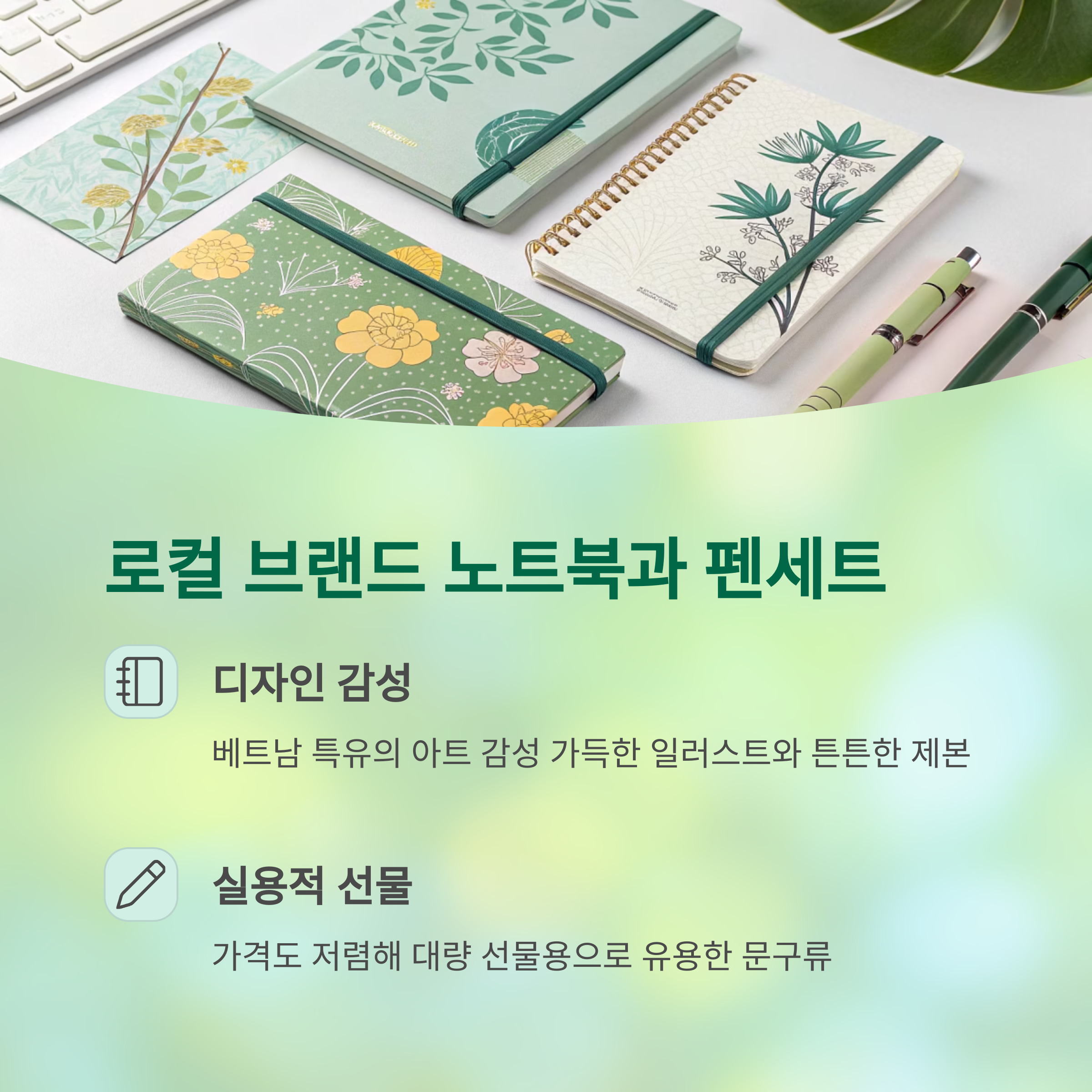 베트남 특유의 디자인 감성과 실용성이 어우러진 노트북과 펜 세트는