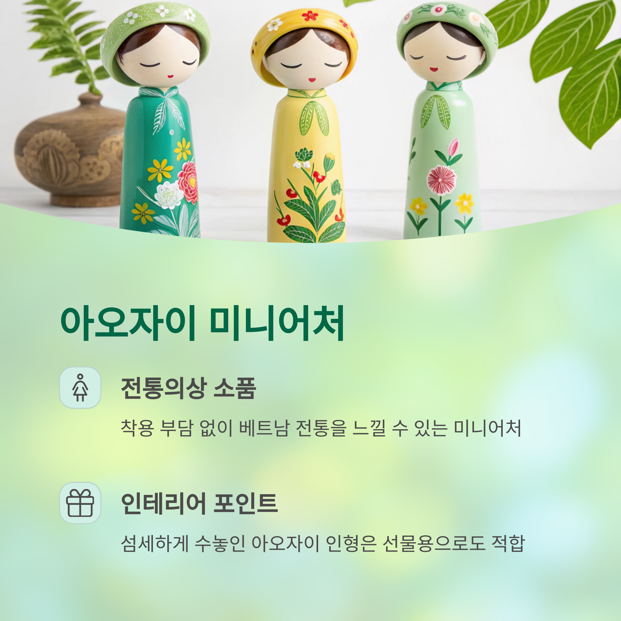 착용하기 부담스러운 전통복 대신 아오자이 인형이나 장식용 미니어처를 추천합니다.