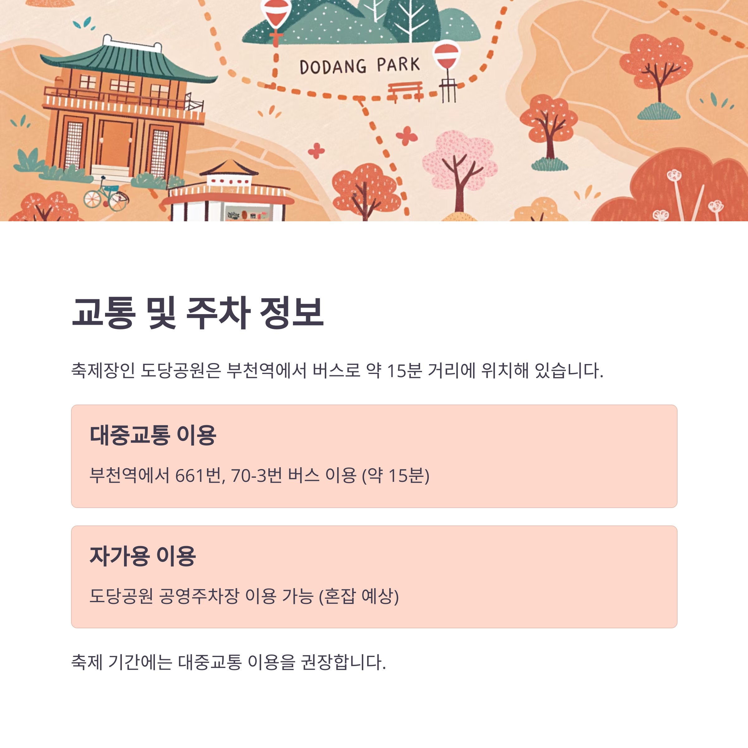 하루 일정으로도 충분히 소화 가능하며, 부천의 다양한 매력을