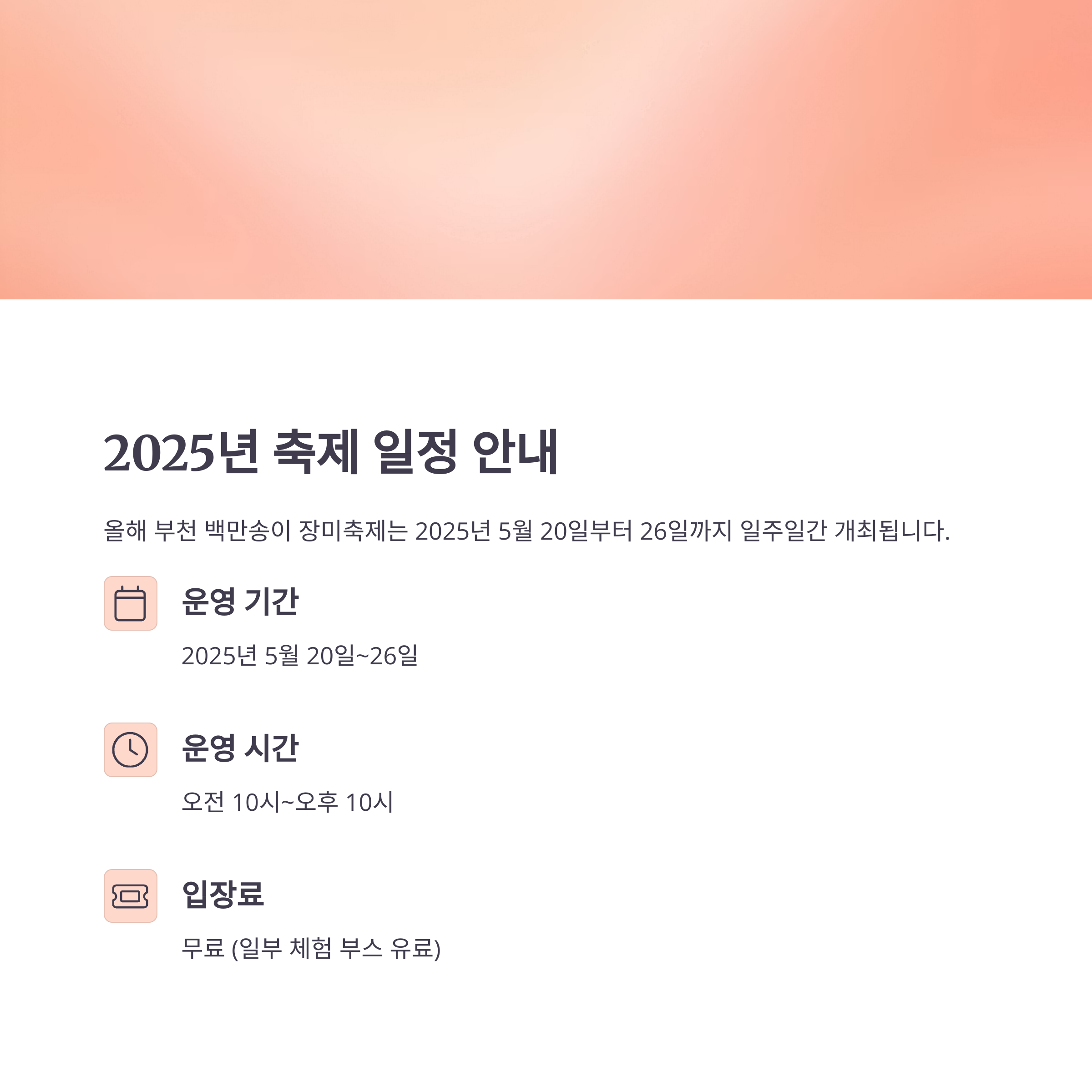 올해 부천 백만송이 장미축제는 2025년 5월 20일부터 26일까지