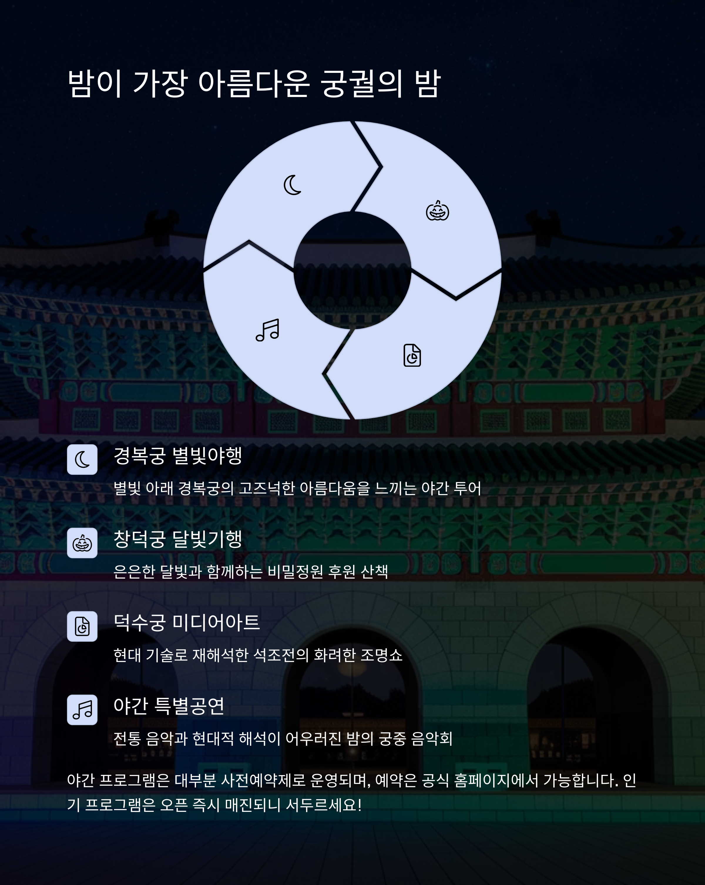 - 야간 개장: 조명 아래의 고궁, 환상적인 분위기