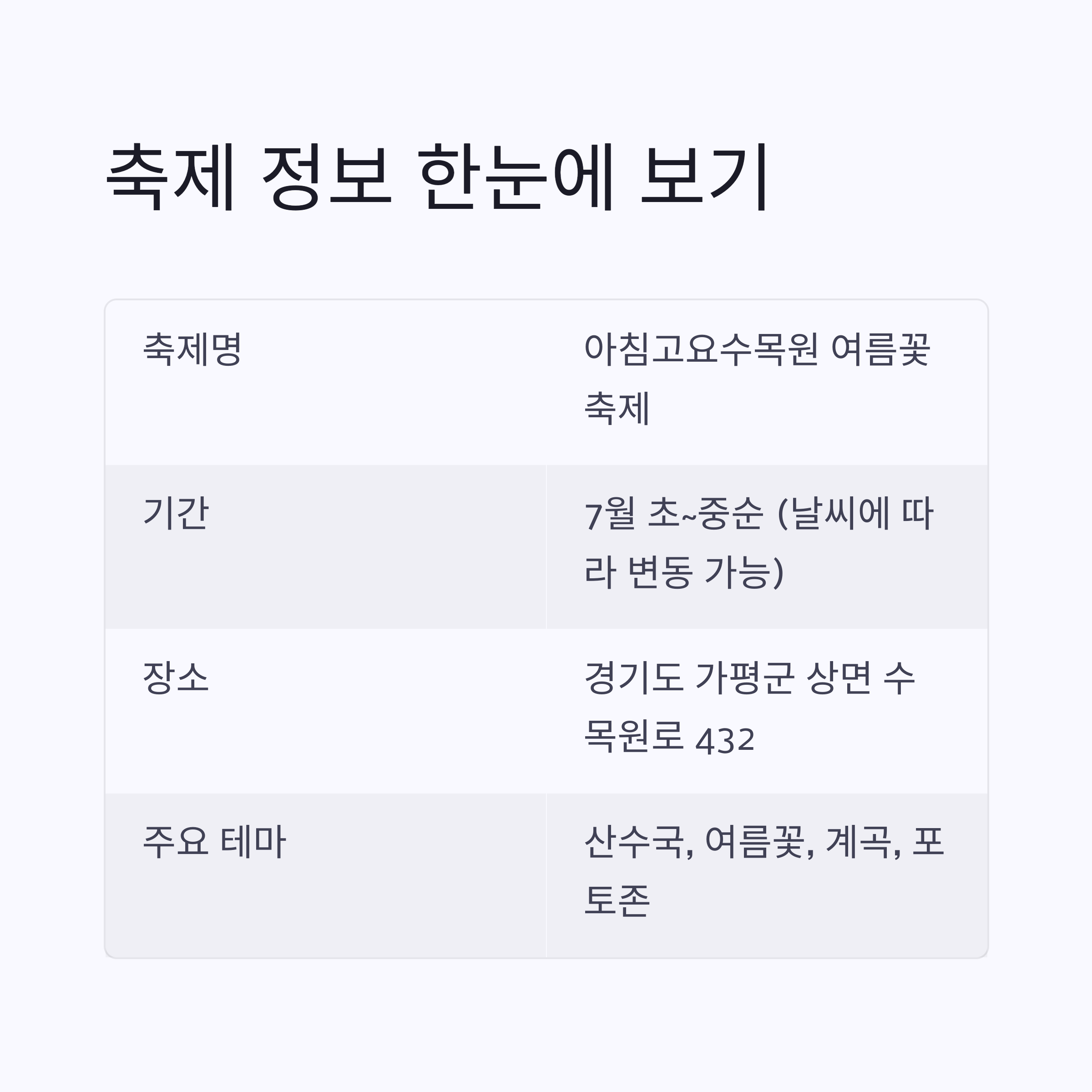 축제명 아침고요수목원 여름꽃축제