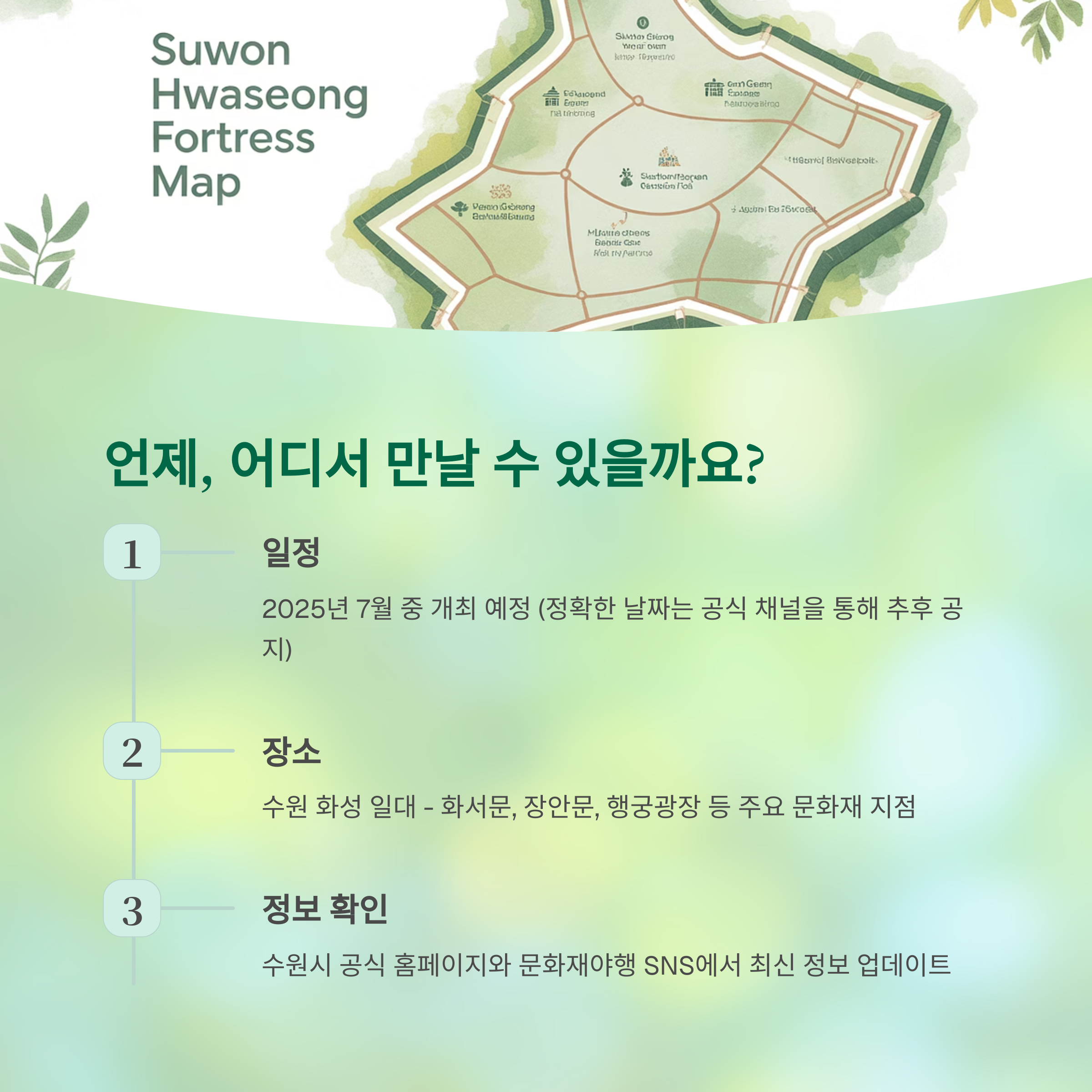현재 2025년 수원 문화재야행은 7월 중으로 예정되어 있으며,