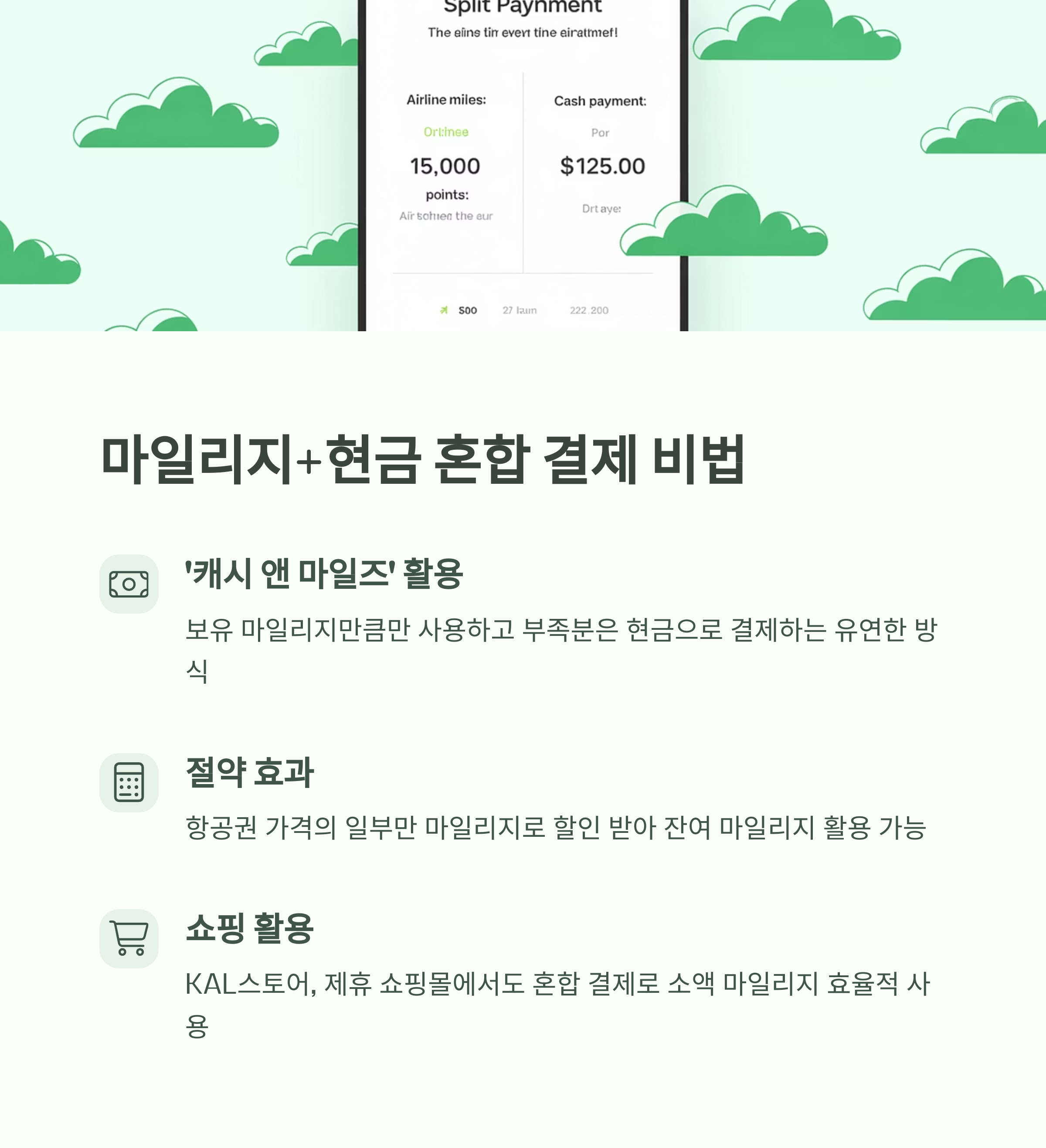 최근에는 마일리지와 현금을 섞어 결제하는 하이브리드 방식이 많이 도입되고 있습니다.
