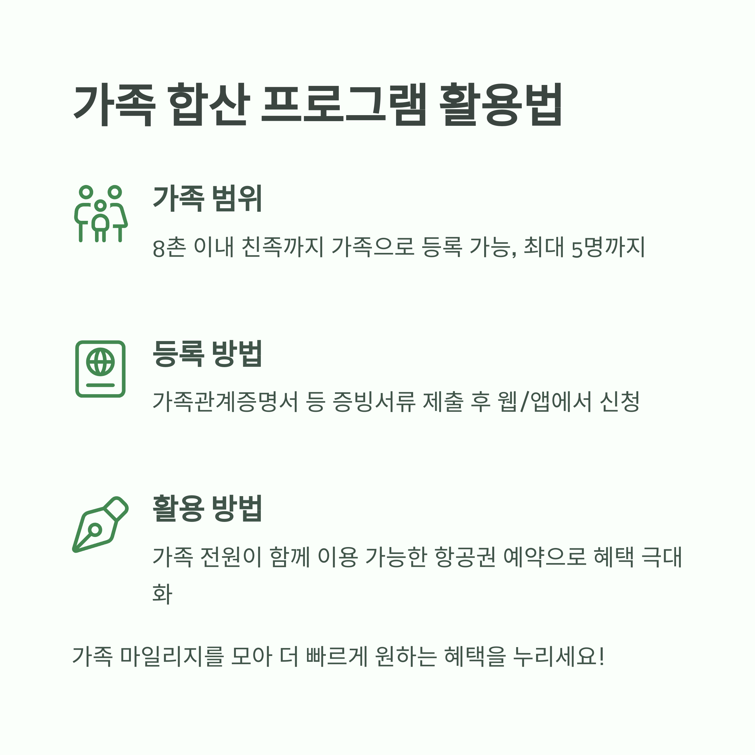 가족끼리 마일리지를 모아 큰 혜택을 받을 수 있죠.