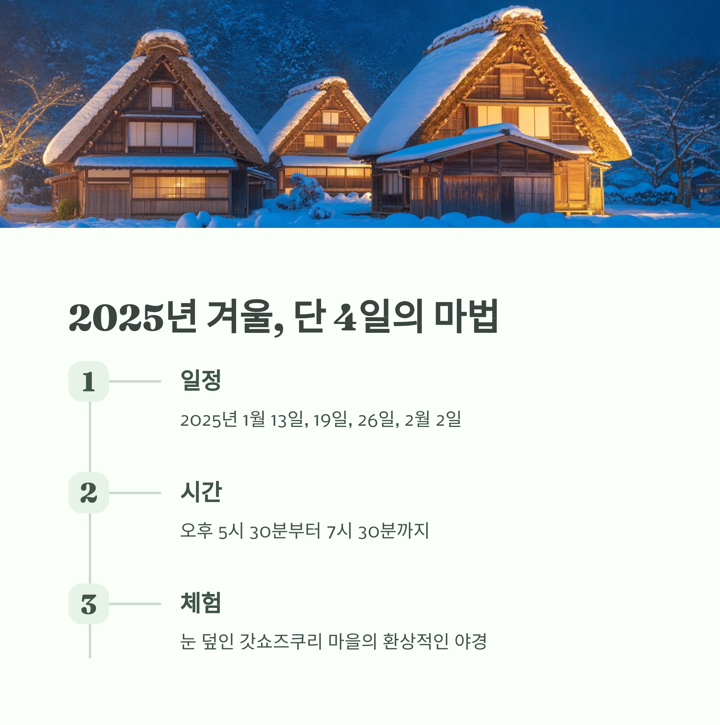 오늘은 일본 여행의 겨울 하이라이트, 시라카와고 라이트업에 대해 알아볼게요.