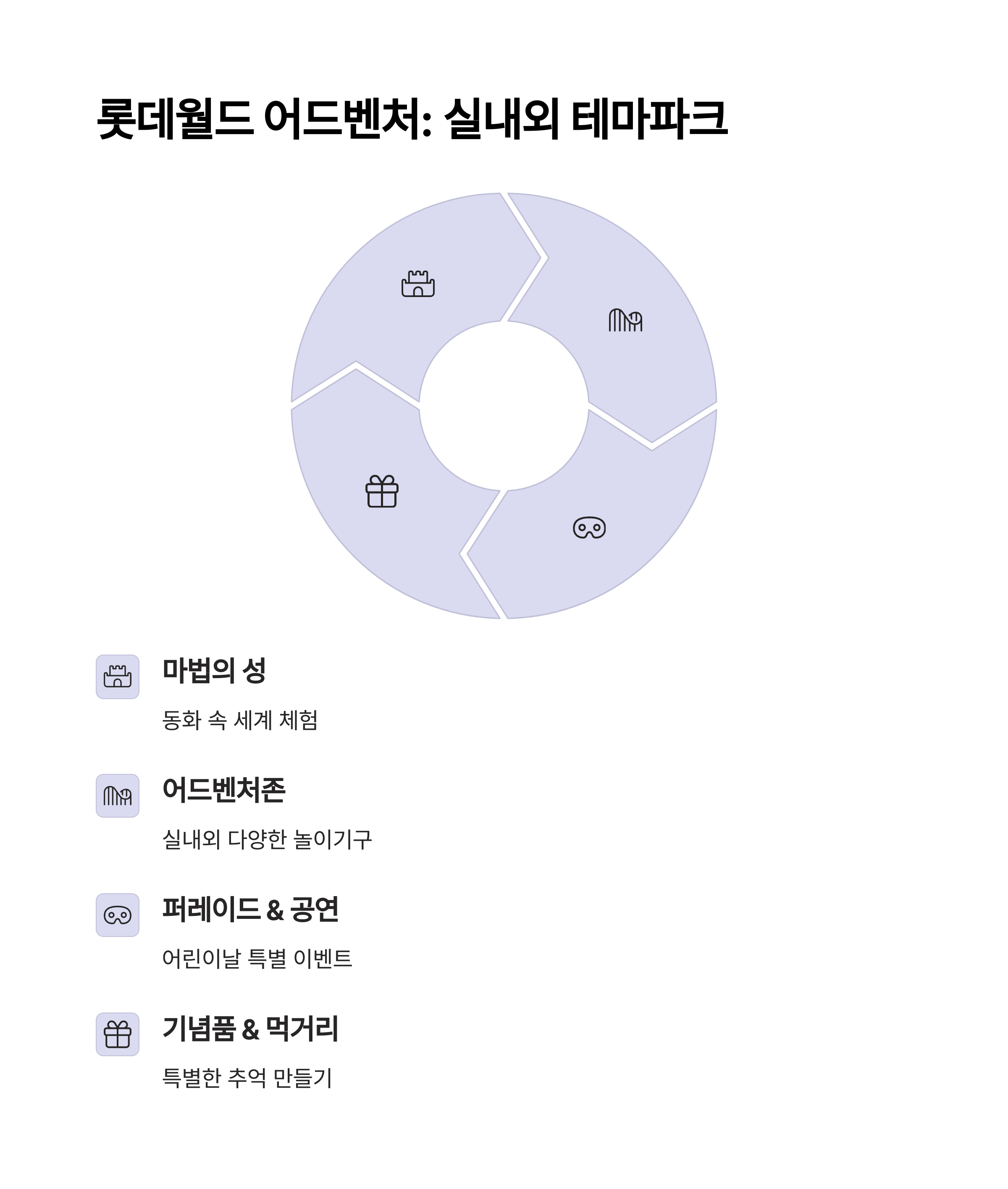 실내 파크와 실외 매직아일랜드까지 있어 날씨 걱정 없이 하루 종일 놀 수 있습니다.